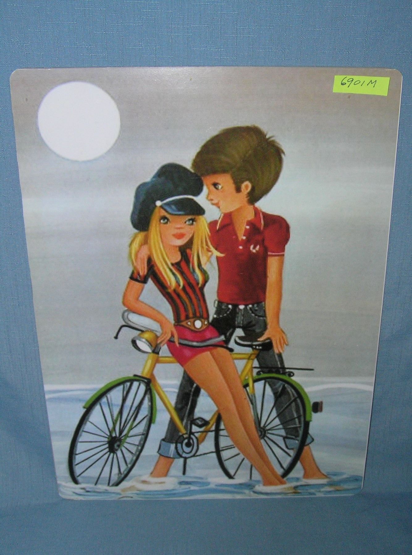 60's-70's Ultra mod art work retro style advertising sign printed on PVC hardboard these signs are auctioned for their decorative and display purposes 12 inches by 16 inches est. value $50.00-$60.00