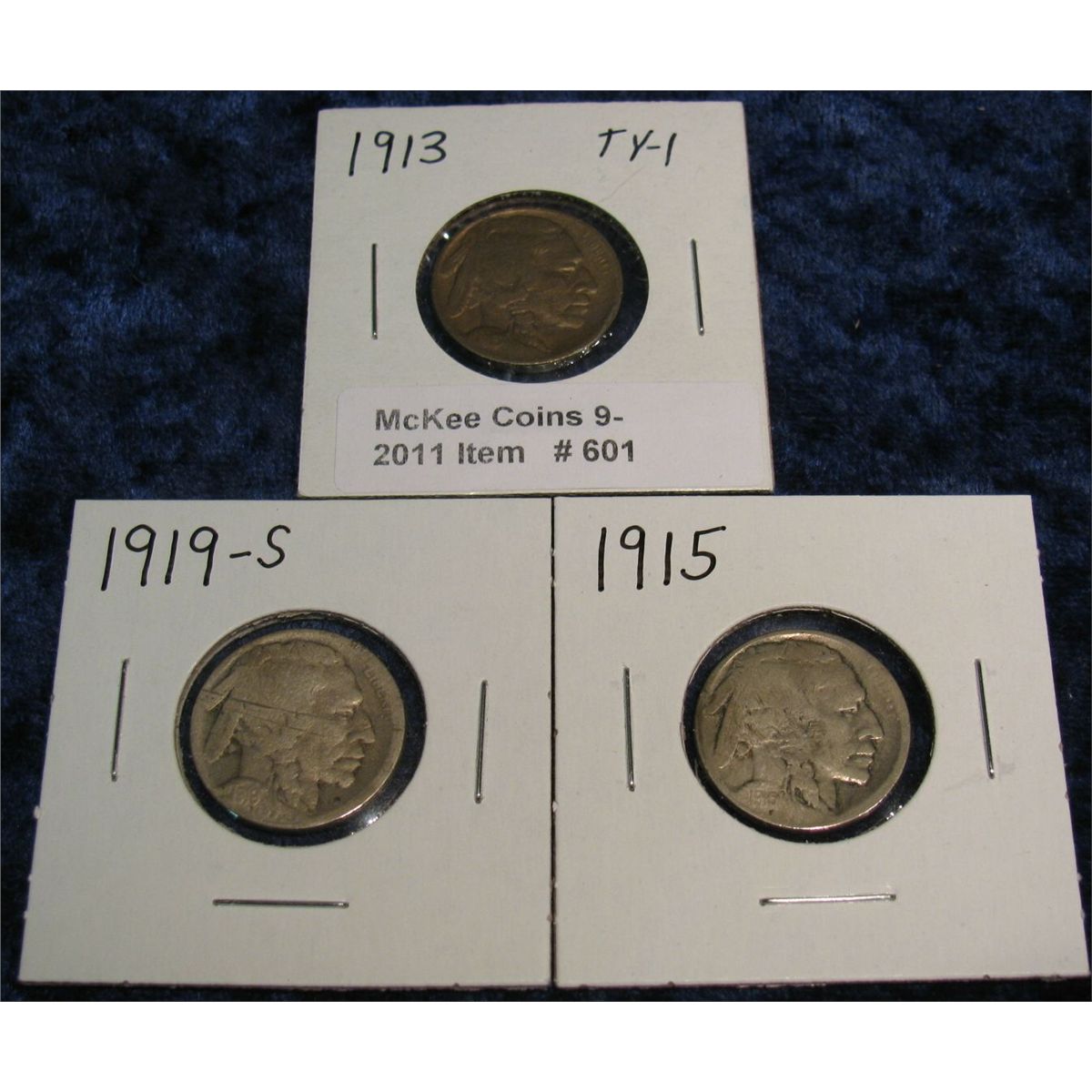 601. 1913 P Type One, 15P, & 19S Buffalo Nickels. Circ.