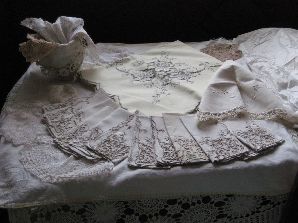 6012 - Linen lot: tablecloth, napkins, and doilies