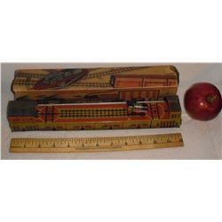 Very old tin metal train as is colourful interesting toy with part box for your collection;