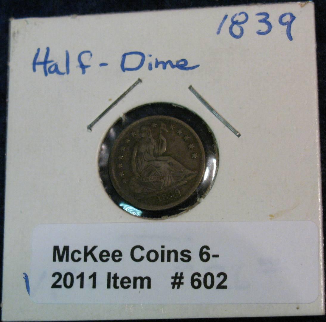 602. 1839 U.S. Seated Liberty Half Dime. VF 20.
