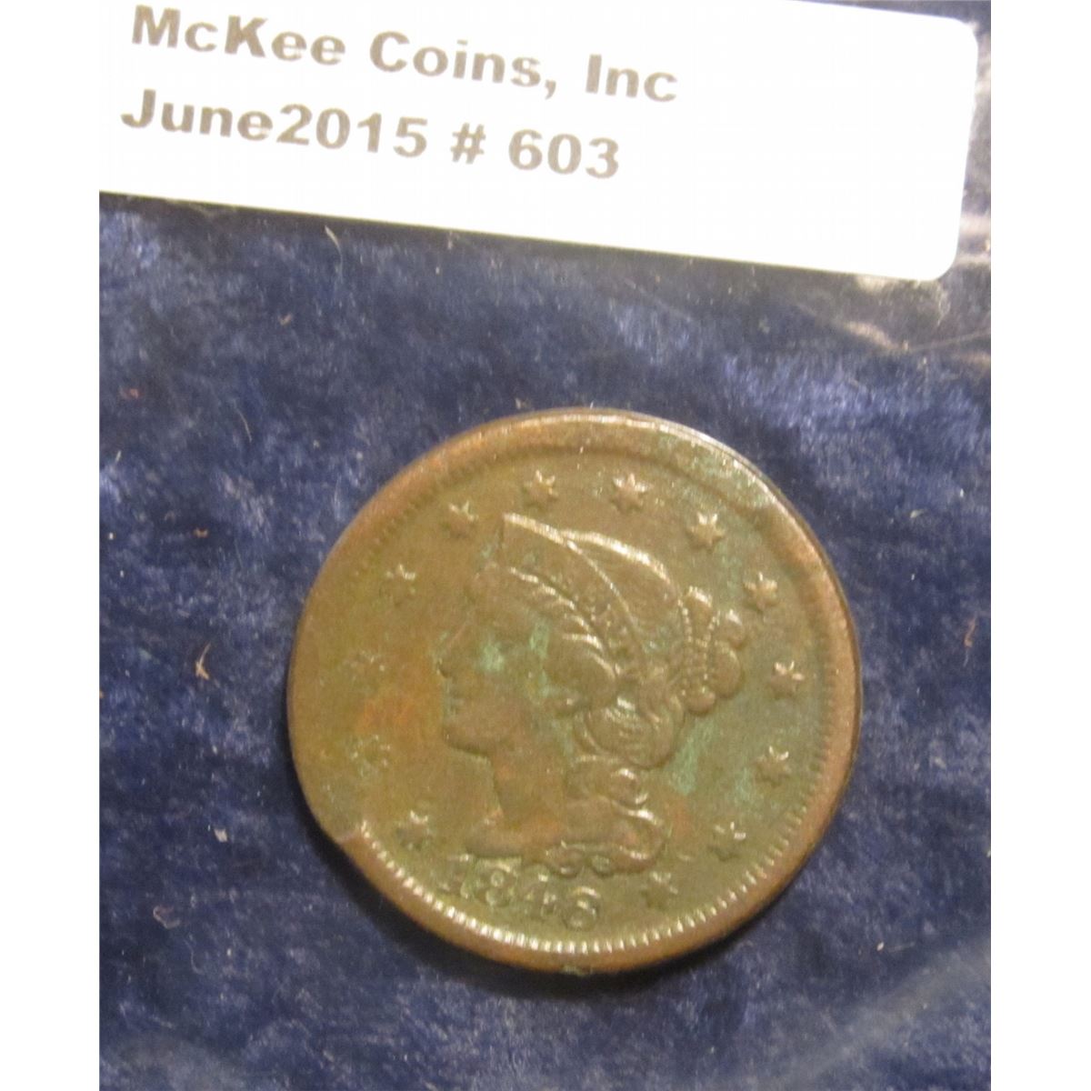 603. 1846 U.S. Large Cent. VG-8. Mushy rim.