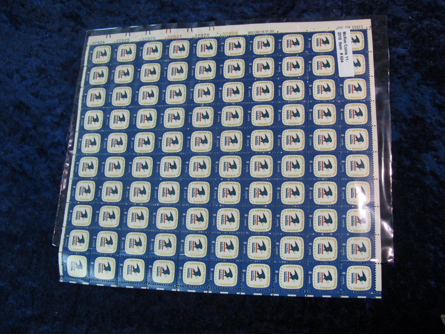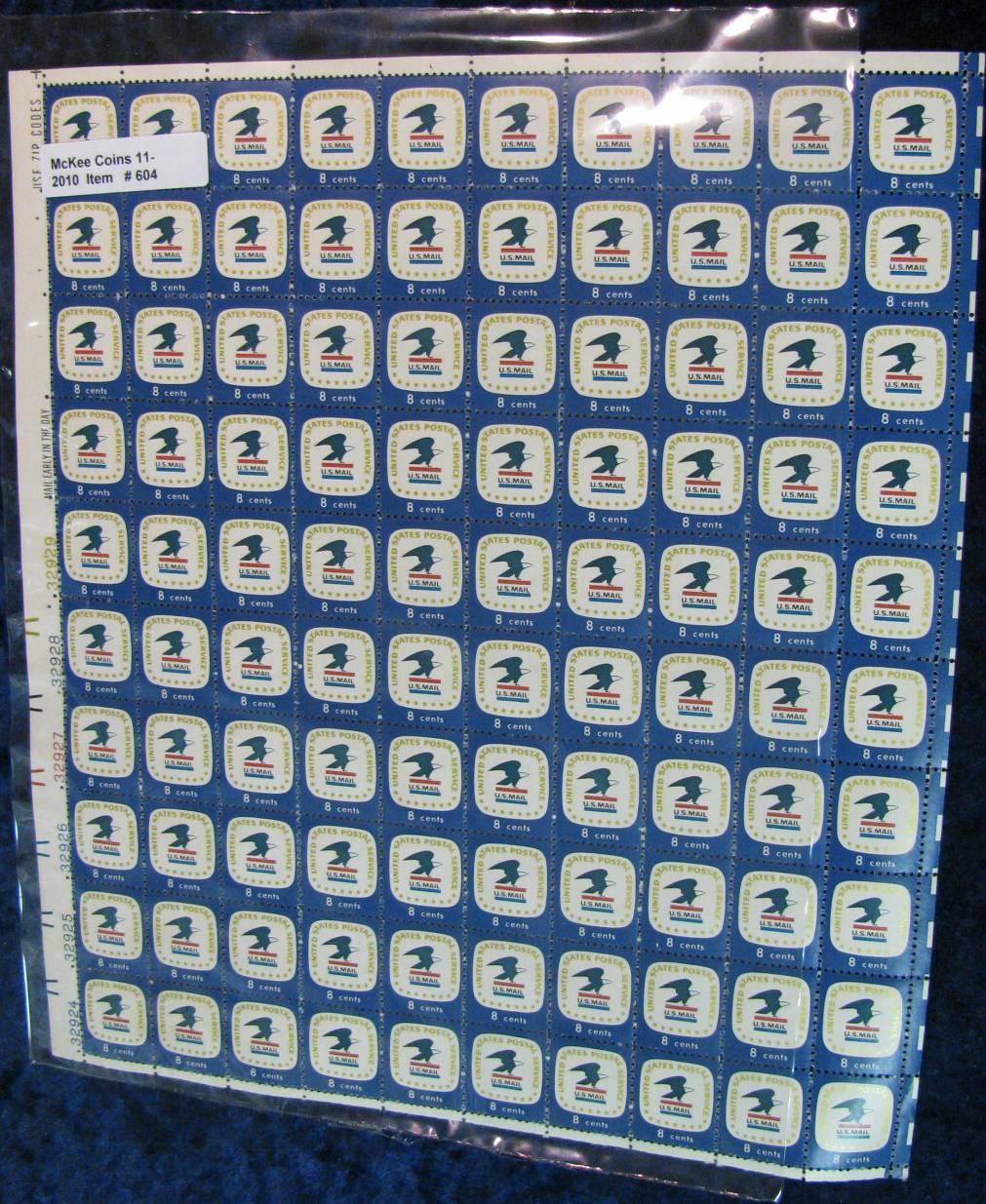 604. Mint Sheet of 100 U.S. Mail 8c Stamps. (Face $8.00).