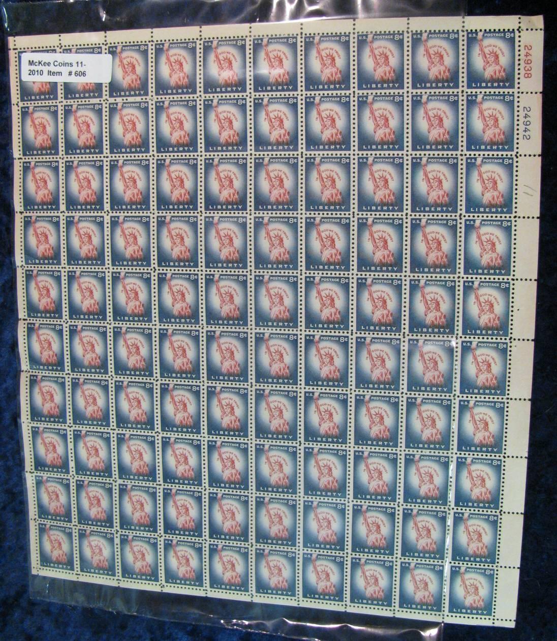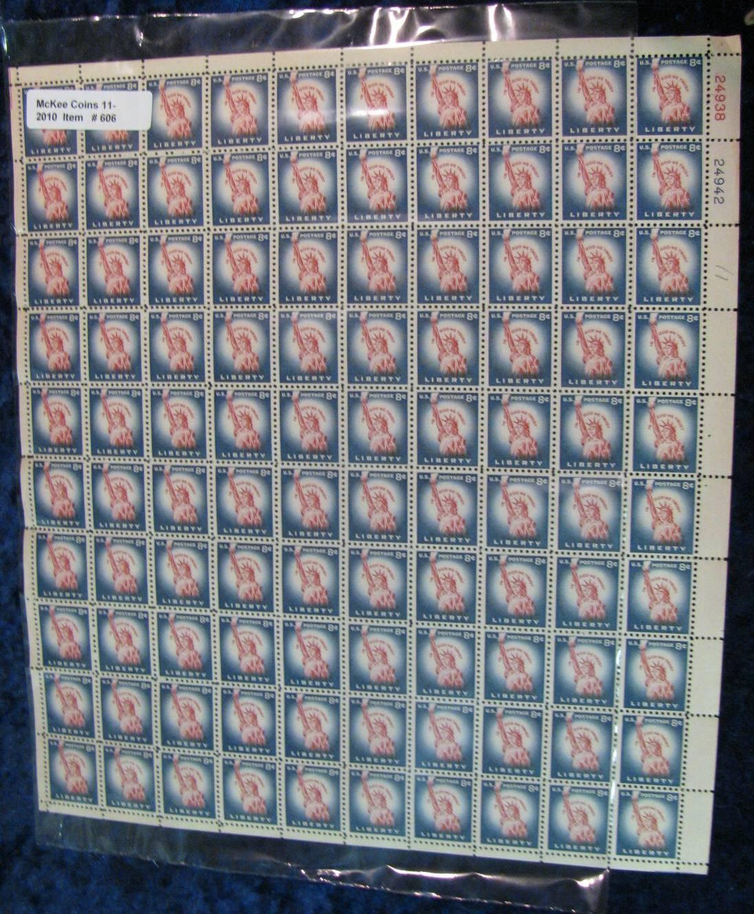 606. Mint Sheet of 100 Liberty 8c Stamps. (Face $8.00).