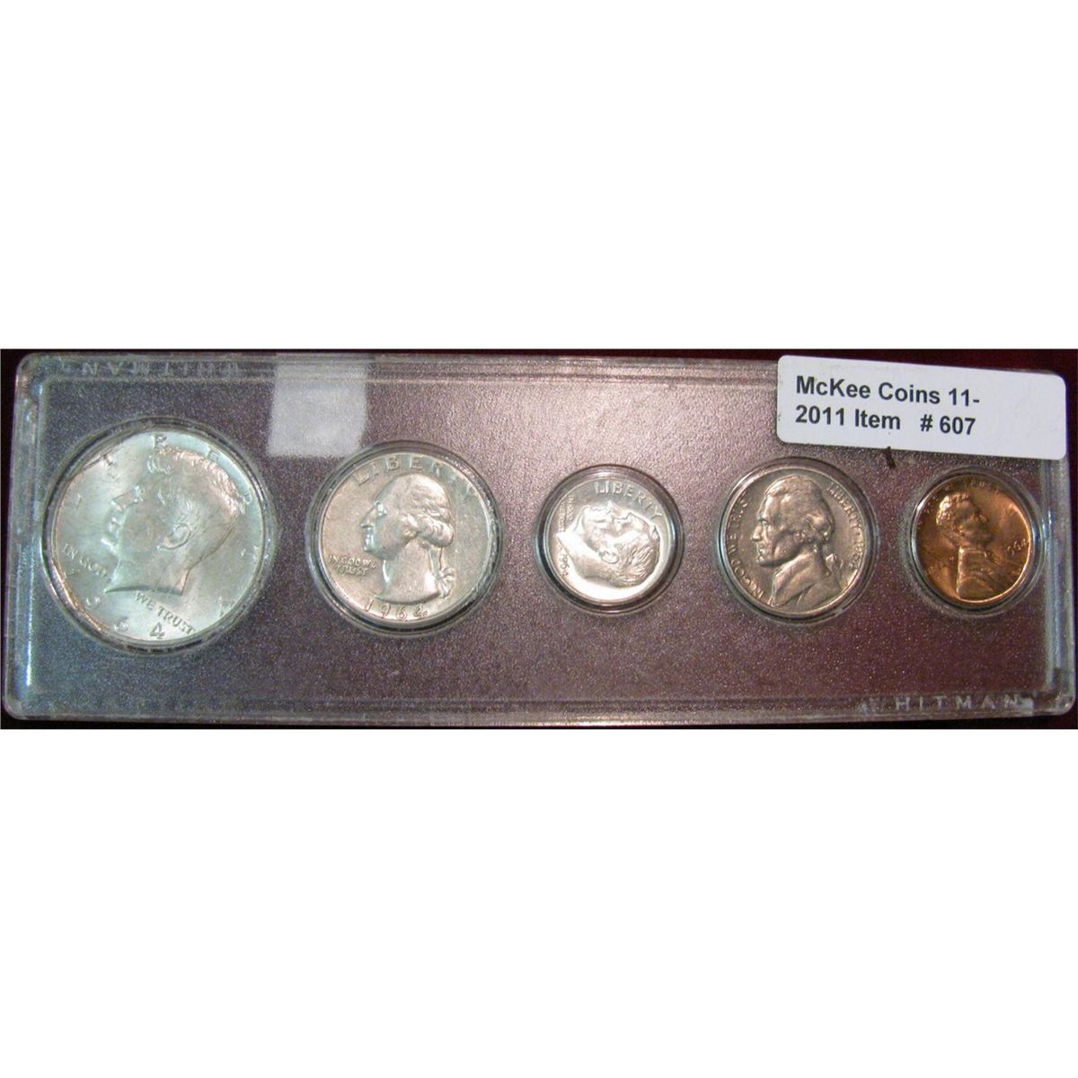 607. 1964 Five-Piece U.S. Coin Year Set in Snaptight case.
