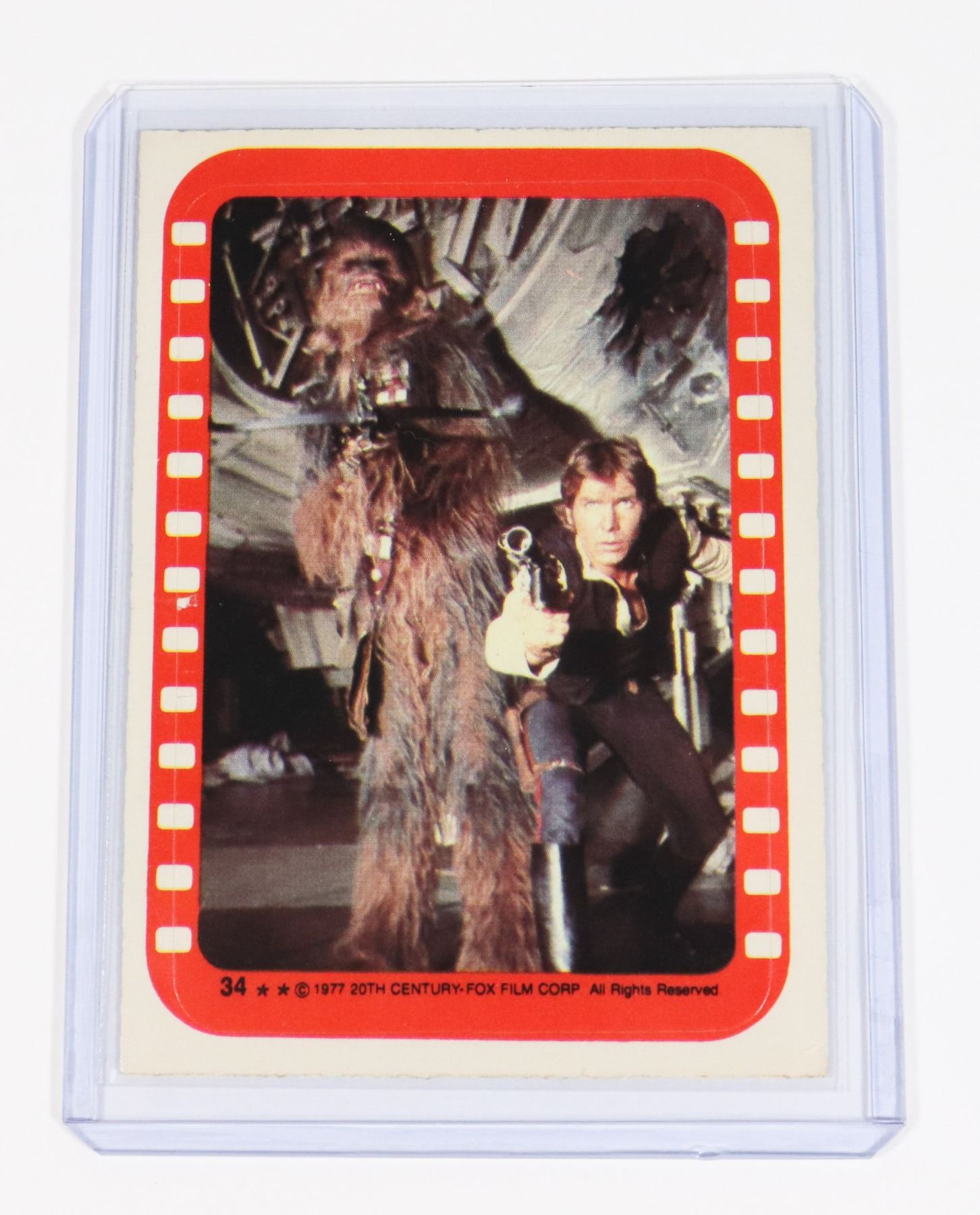 CHEWBACCA THE STAR WARRIORS AIM FOR ACTION READY TO GRADE! TOPPS STICKER CARD STAR WARS A NEW HOPE 1977 INCLUDES CARD PROTECTIVE SLEEVE
