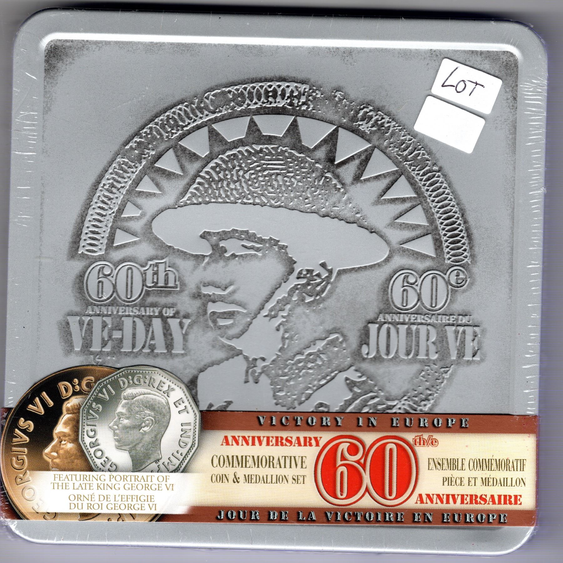 60TH ANNIVERSARY OF VE DAY, SILVER 5 CENT AND MEDALLION SET, SEALED