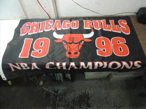 60X36 1996 CHICAGO BULLS BASKETBALL FLAG. AS SHOWN. VIEW PICTURE FOR DETAIL.