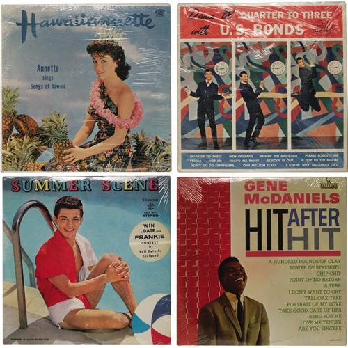 <B>Various Early '60s Artists Sealed LP Group of 4 (1960-68).</B></I> Fresh from the '60s is this eclectic grouping of Pop and Rock LPs, all still sealed! Included are Annette's "Hawaiiannette" (Buena Vista 3303, 1960) in mono; Frankie Avalon's "Summer Scene" (Chancellor 5011, 1960) in stereo in MT 9/ SS; Gary "U.S." Bonds' "Dance Til Quarter to Three" (LeGrand 3001, 1961) in mono; and Gene McDaniels' "Hit After Hit" (Liberty 3258, 1968) in mono. All four LPs grade MT 9/ Still Sealed! <I>From the GRT Collection</B></I>.<BR><BR><b>Shipping:</b> Recordings (<a target="_blank" href="http://www.heritageauctions.com/common/shipping.php">view shipping information</a>)