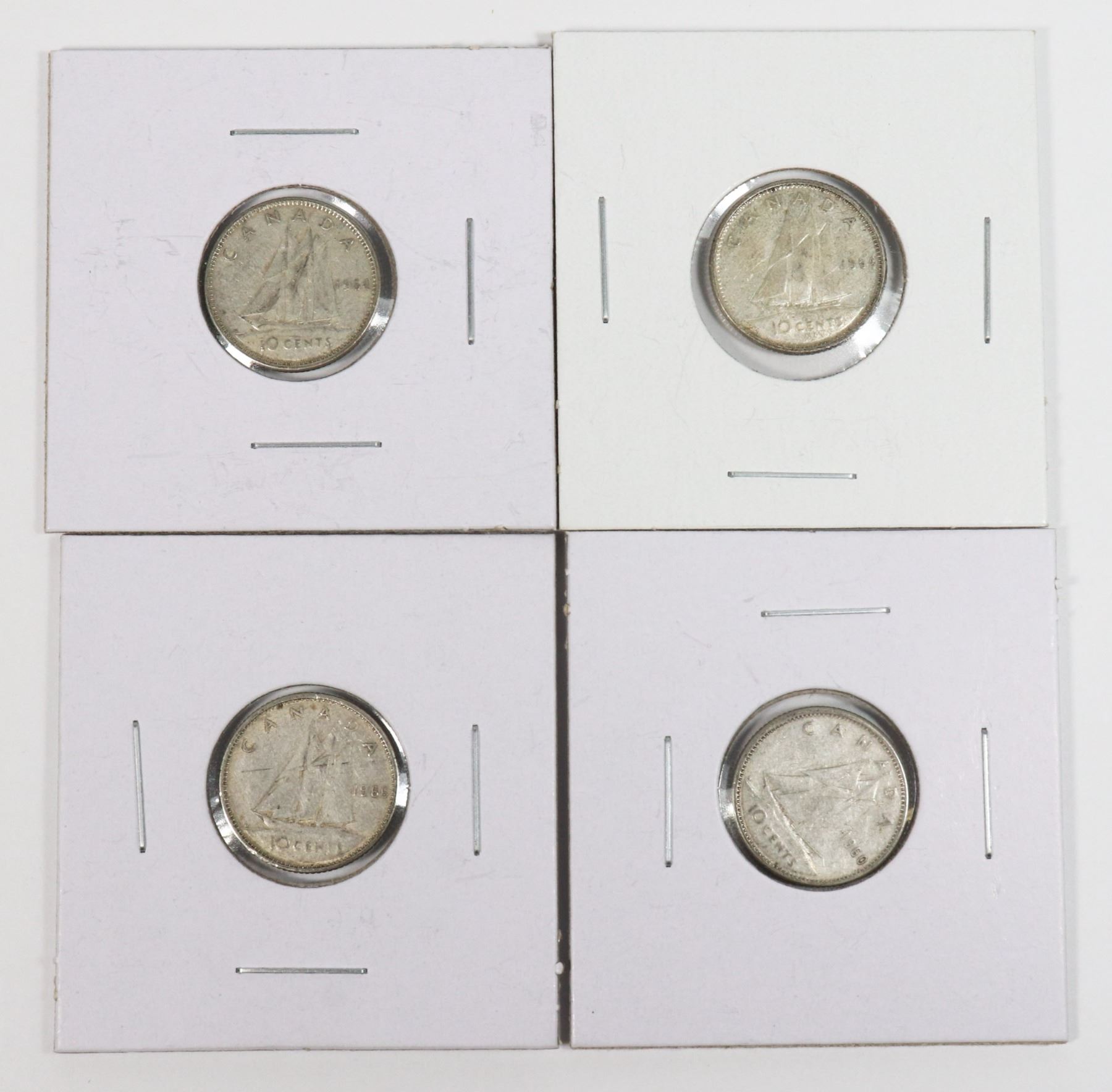 LOT OF 4 SILVER COINS 1960 1964 X2, 1966 QUEEN ELIZABETH II QEII CANADA CANADIAN CURRENCY