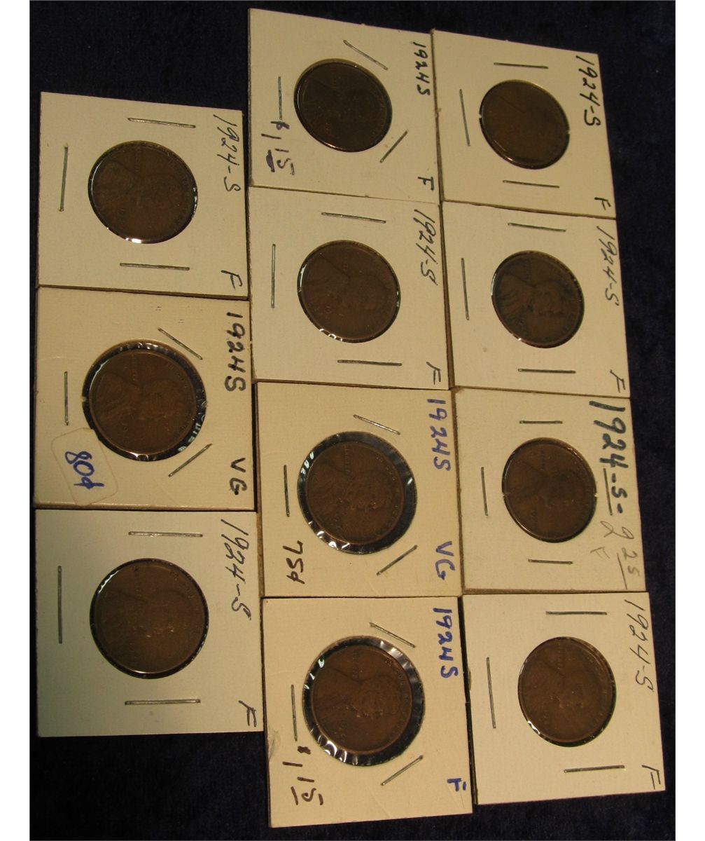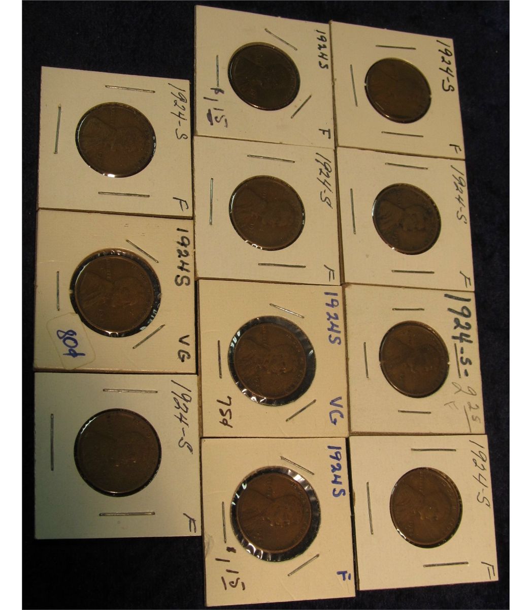 61. (11) 1924 S Lincoln Cents. VG-F. Redbook value $20.00.