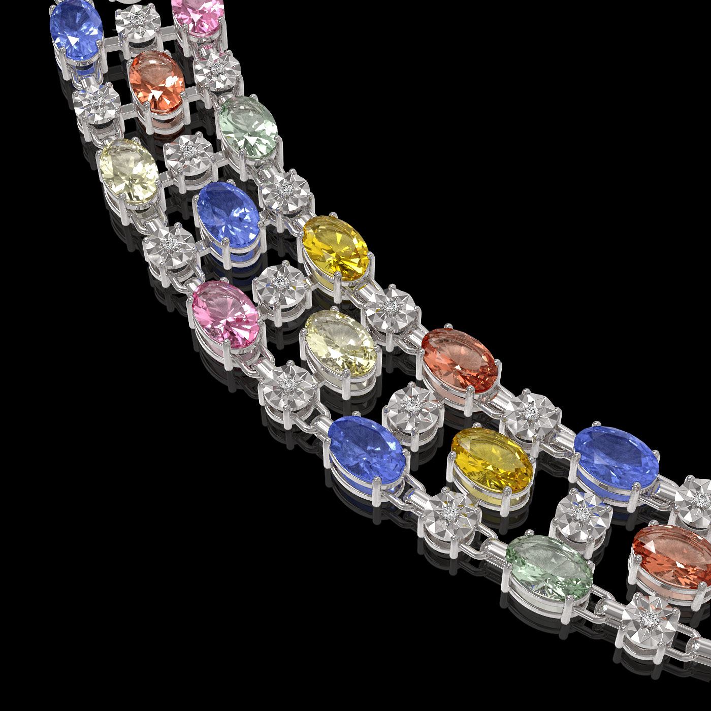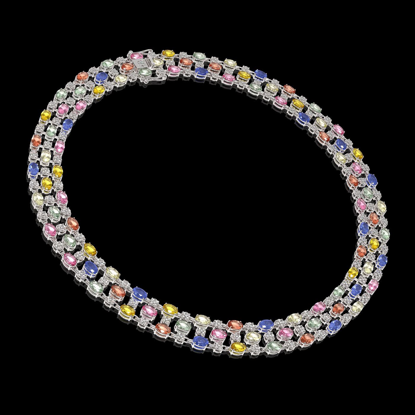 REF-709M3G - SKU: 62690 ---- 61.73 ctw Multi Color Sapphire & Diamond Necklace 10K White Gold