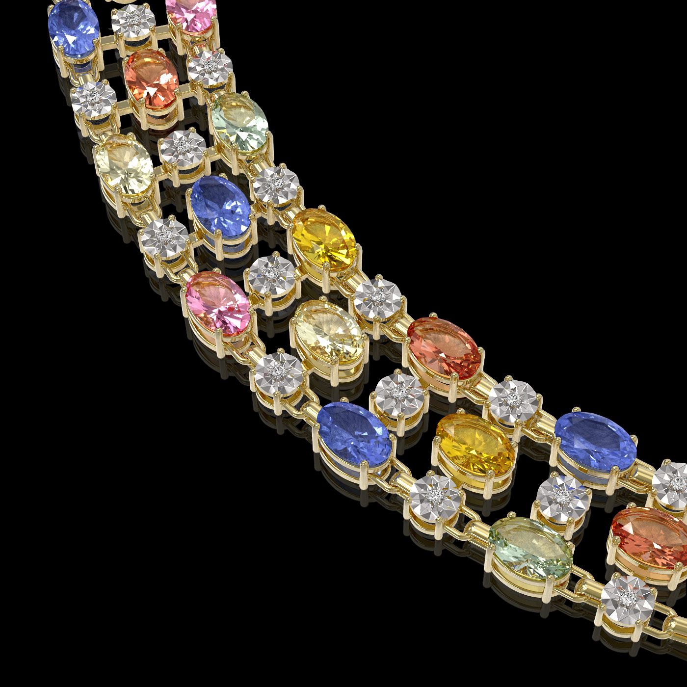 REF-709W3H - SKU: 62692 ---- 61.73 ctw Multi Color Sapphire & Diamond Necklace 10K Yellow Gold