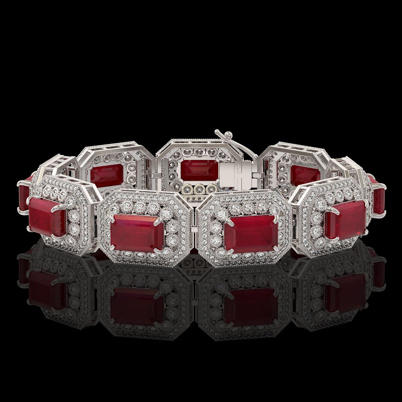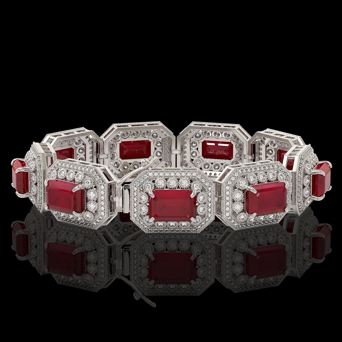 REF-1288A4N - SKU: 43487 ---- 61.92 ctw Certified Ruby & Diamond Victorian Bracelet 14K White Gold