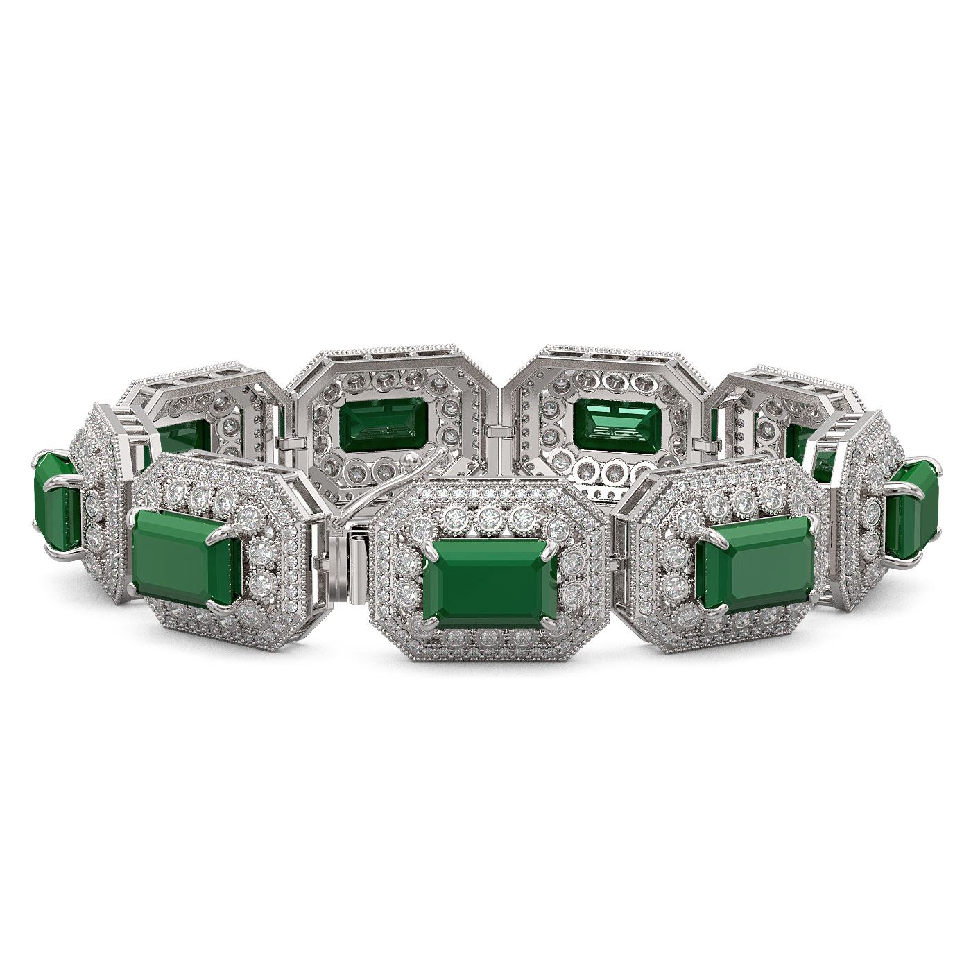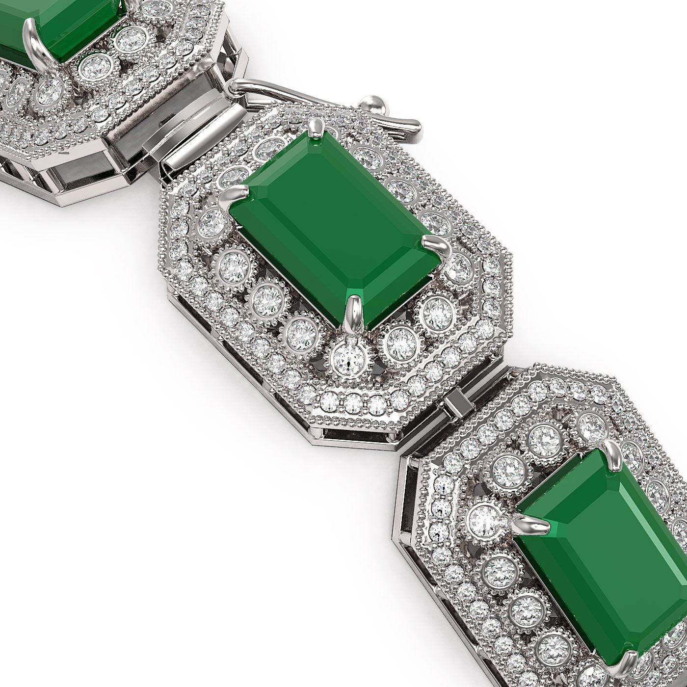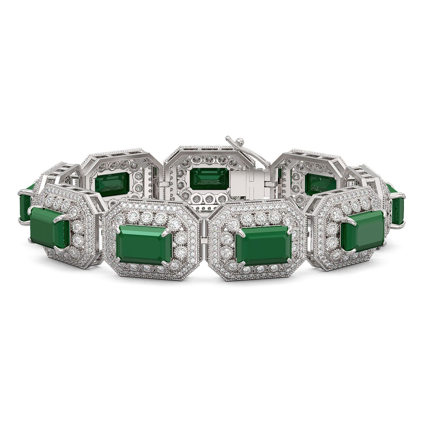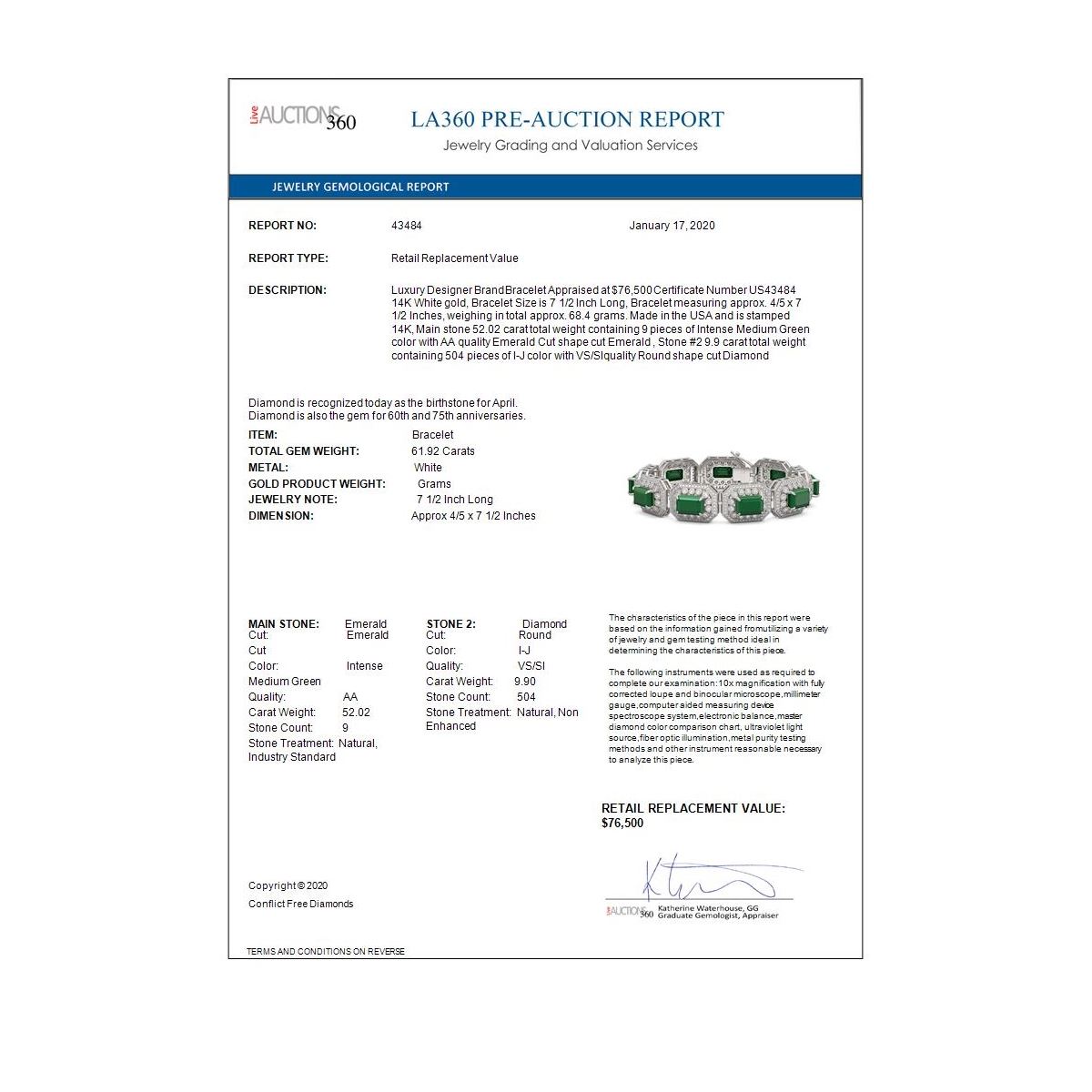 REF-1545W5H - SKU: 43484 ---- 61.92 ctw Emerald & Diamond Victorian Bracelet 14K White Gold