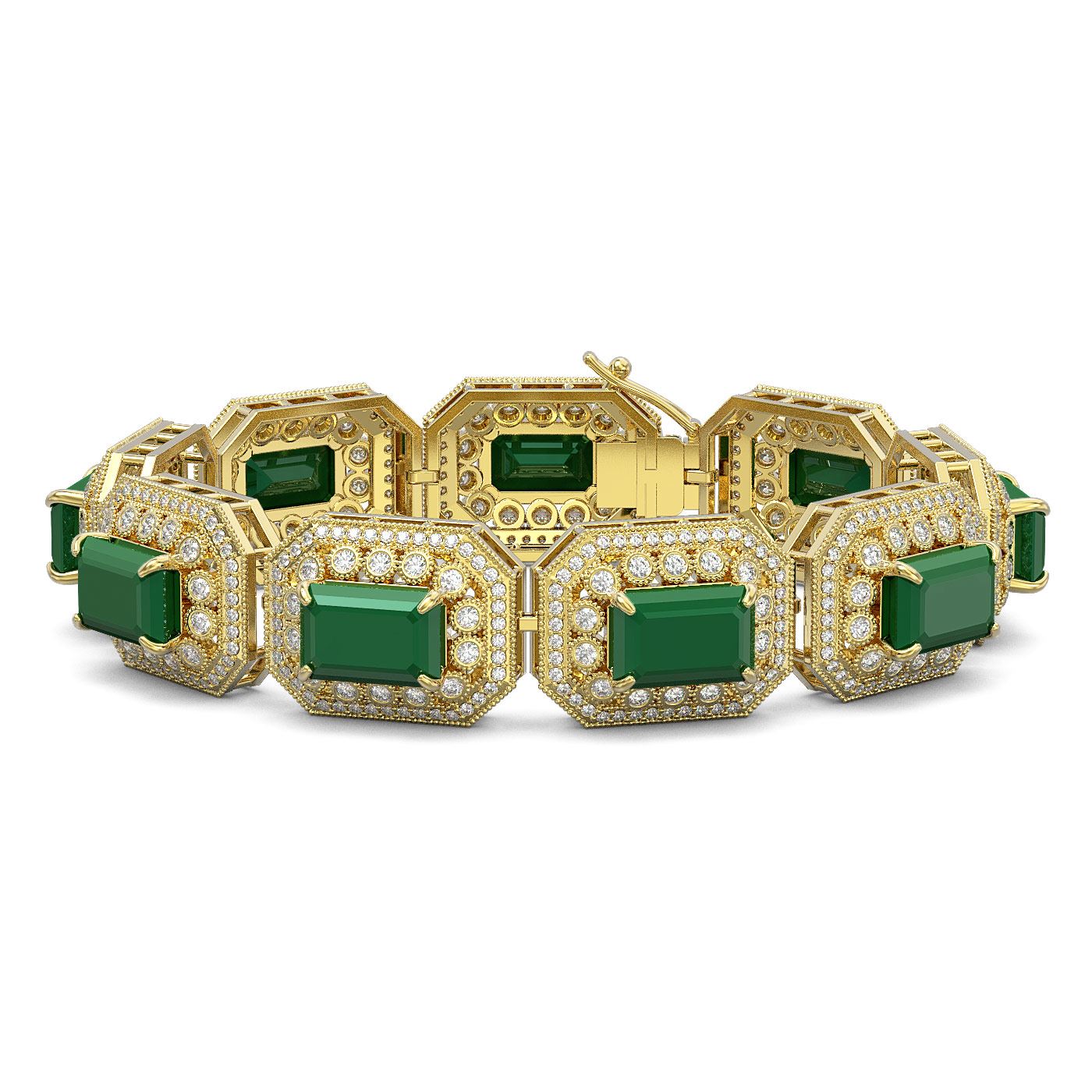 SKU: 43486 ---- 61.92 ctw Emerald & Diamond Victorian Bracelet 14K Yellow Gold