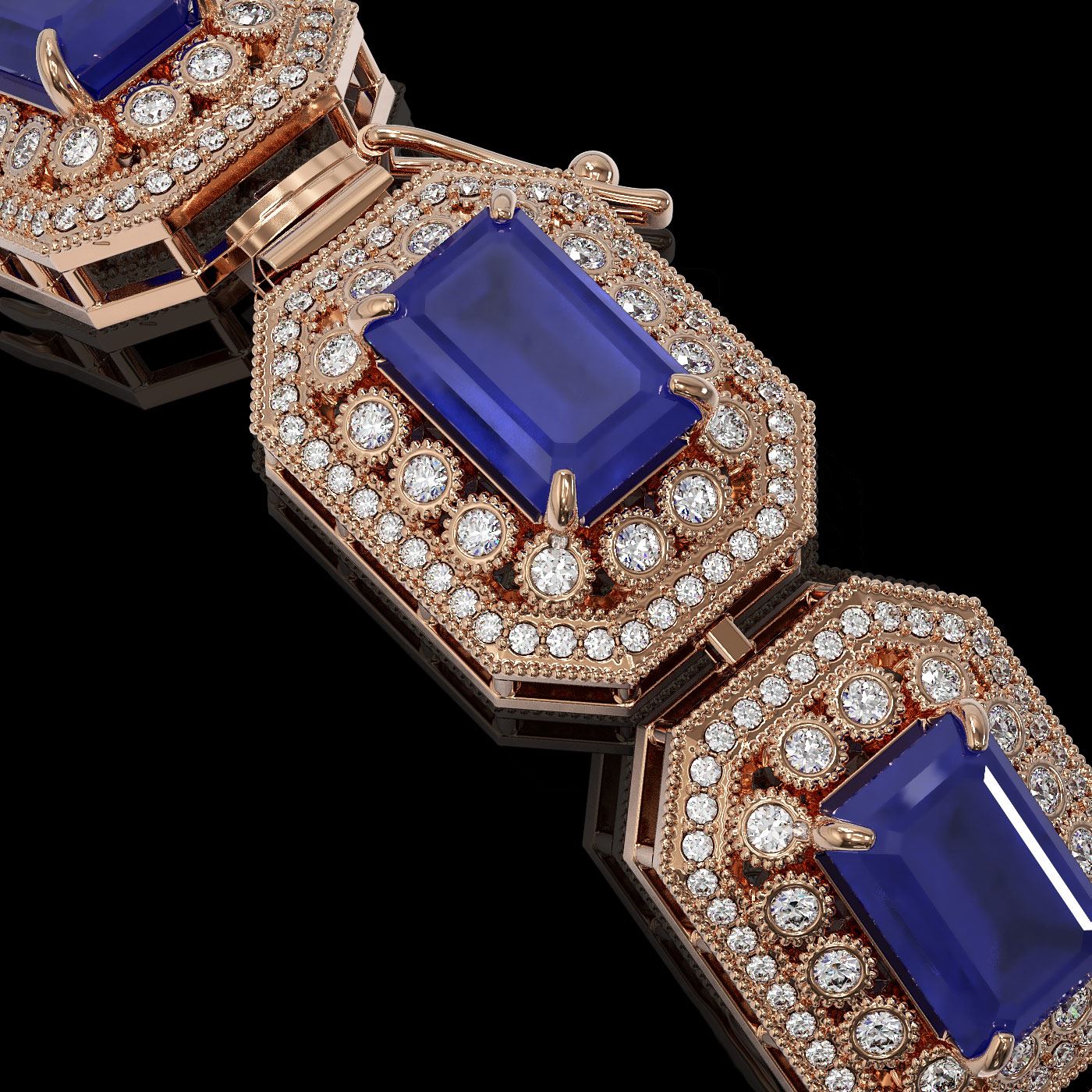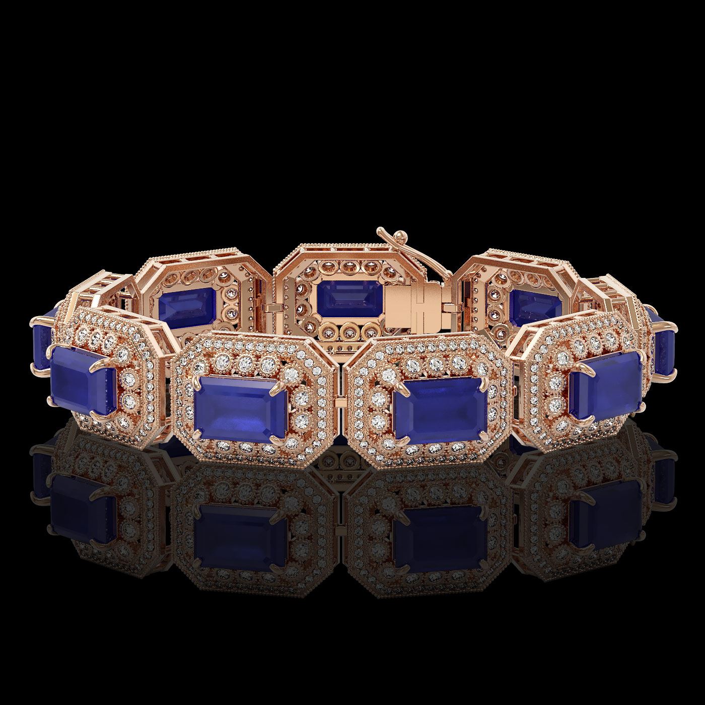 REF-1288Y4X - SKU: 43491 ---- 61.92 ctw Sapphire & Diamond Victorian Bracelet 14K Rose Gold