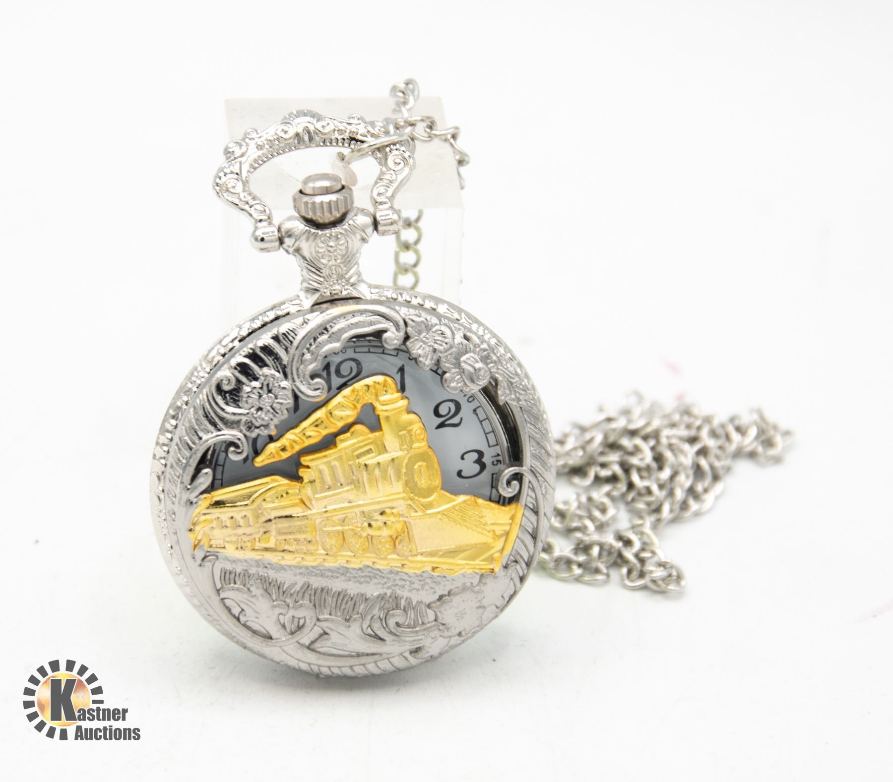 GOLD TONE TRAIN SCENE ON LID WITH CHAIN **ALL ITEMS MUST BE REMOVED BY 5PM SATURDAY, JUNE 8TH 2024. ALL REMAINING ITEMS WILL BE SUBJECT TO A $6.00 PER DAY STORAGE CHARGE. ANY ITEMS REMAINING AFTER MONDAY, JUNE 24TH 2024 WILL BE CONSIDERED FORFEITED. NO REFUNDS WILL BE ISSUED FOR FORFEITED ITEMS. TO SCHEDULE A PICK UP APPOINTMENT CLICK HERE