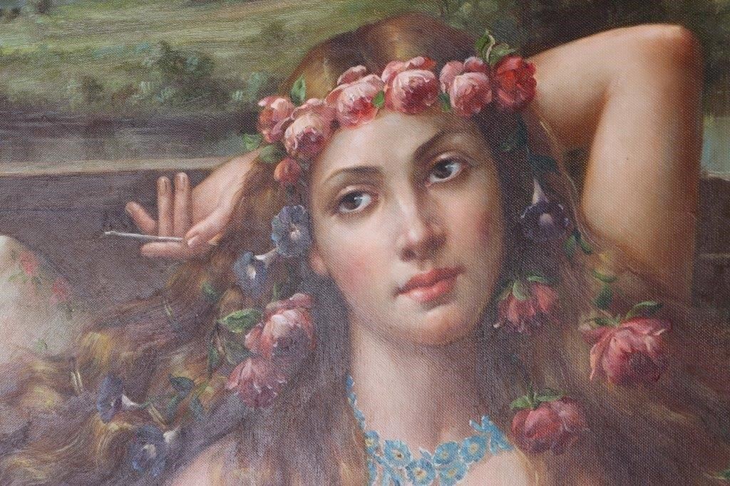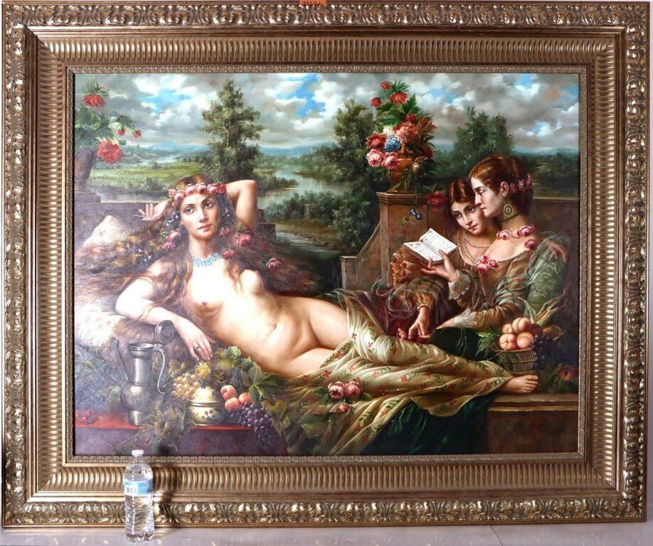 Unknown Artist Nude Woman oil on canvas to include artist signature and very nice elaborate frame.