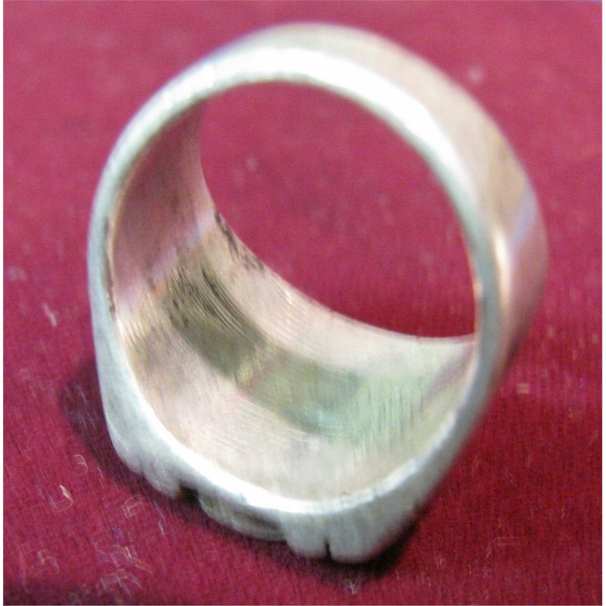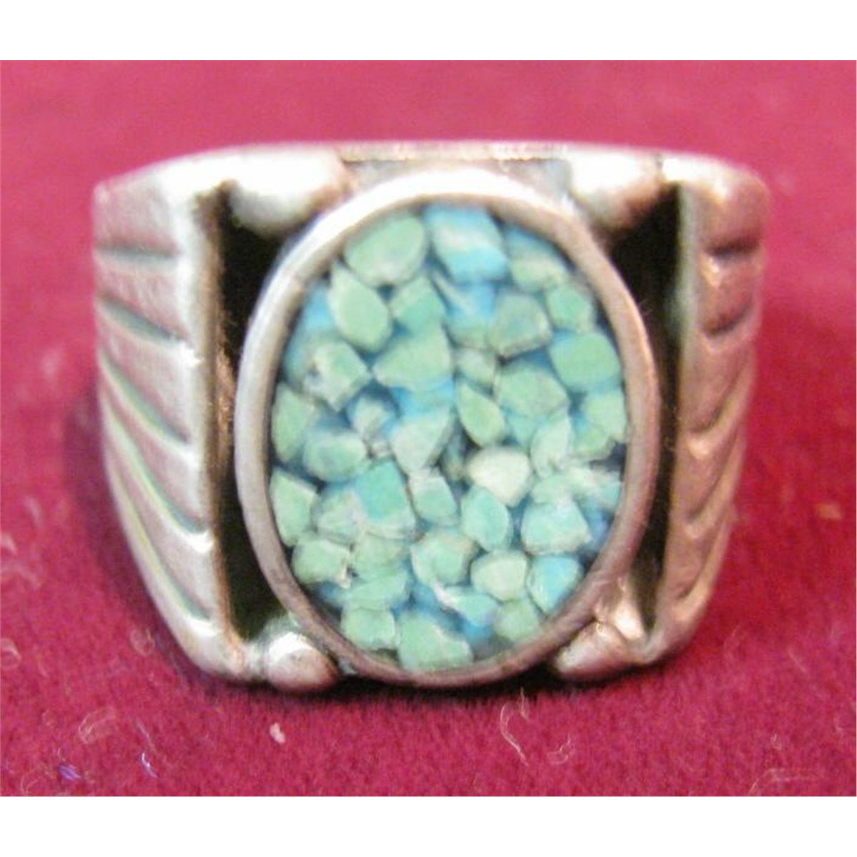 610. Men's Sterling Silver Ring with Crushed Turquoise set. Small size. Old.