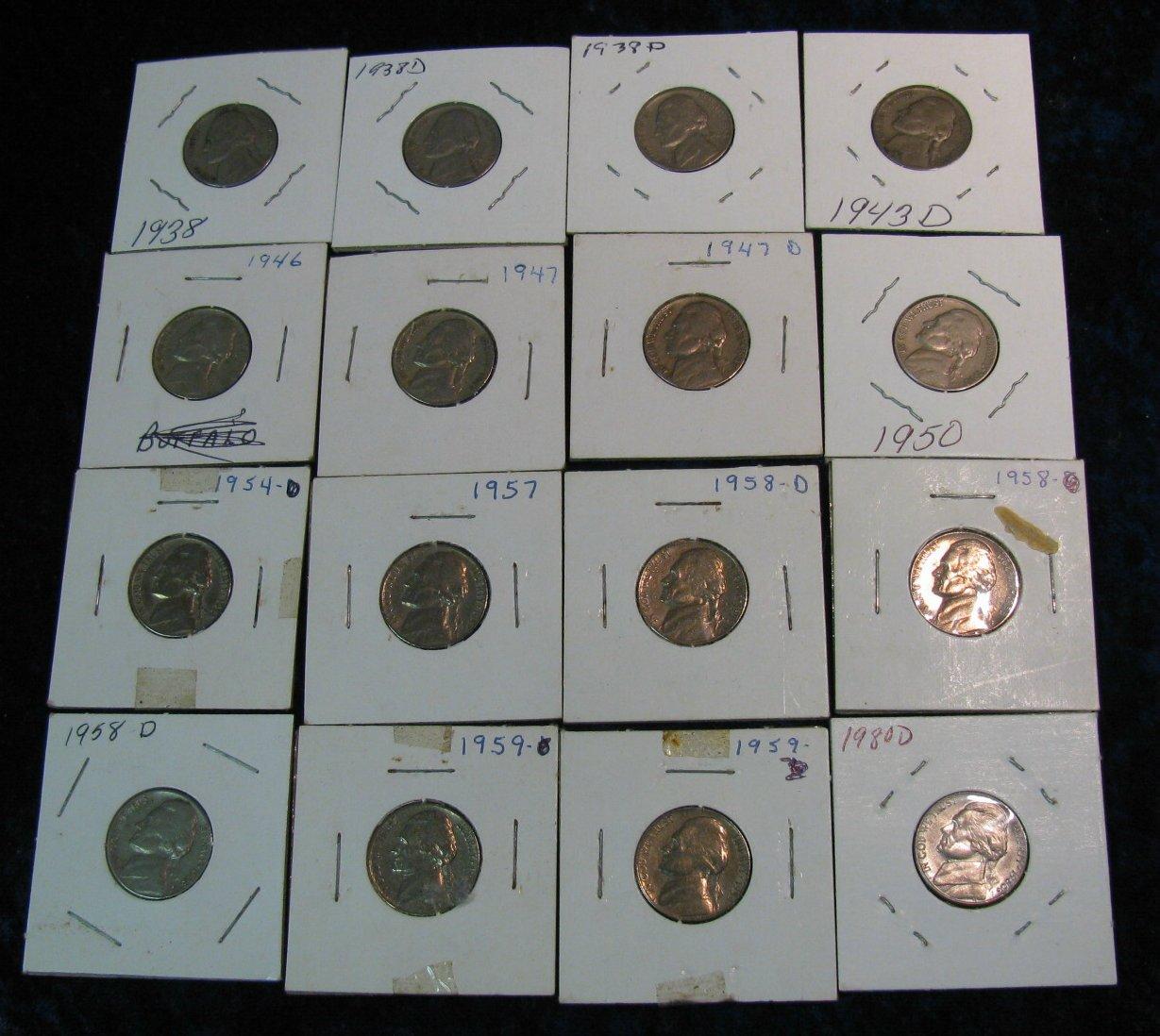 611. (16) 1938-80 Jefferson Nickels. Includes (2) 1938D a Silver War nickel and more. Grades up to AU.