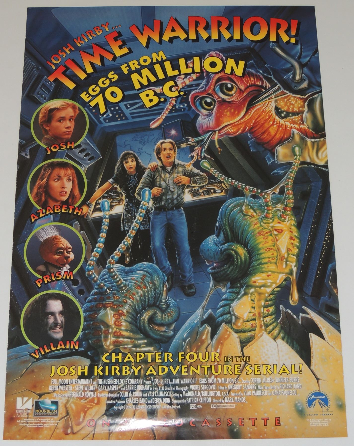 39.5X27 1995 JOSH KIRBY TIME WARRIOR! CULT CLASSIC MOVIE POSTER FROM BUYOUT PURCHASE OF VHS STORE OLD STOCK ADVERTISING DISPLAY
