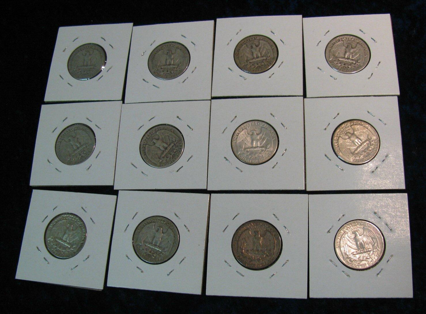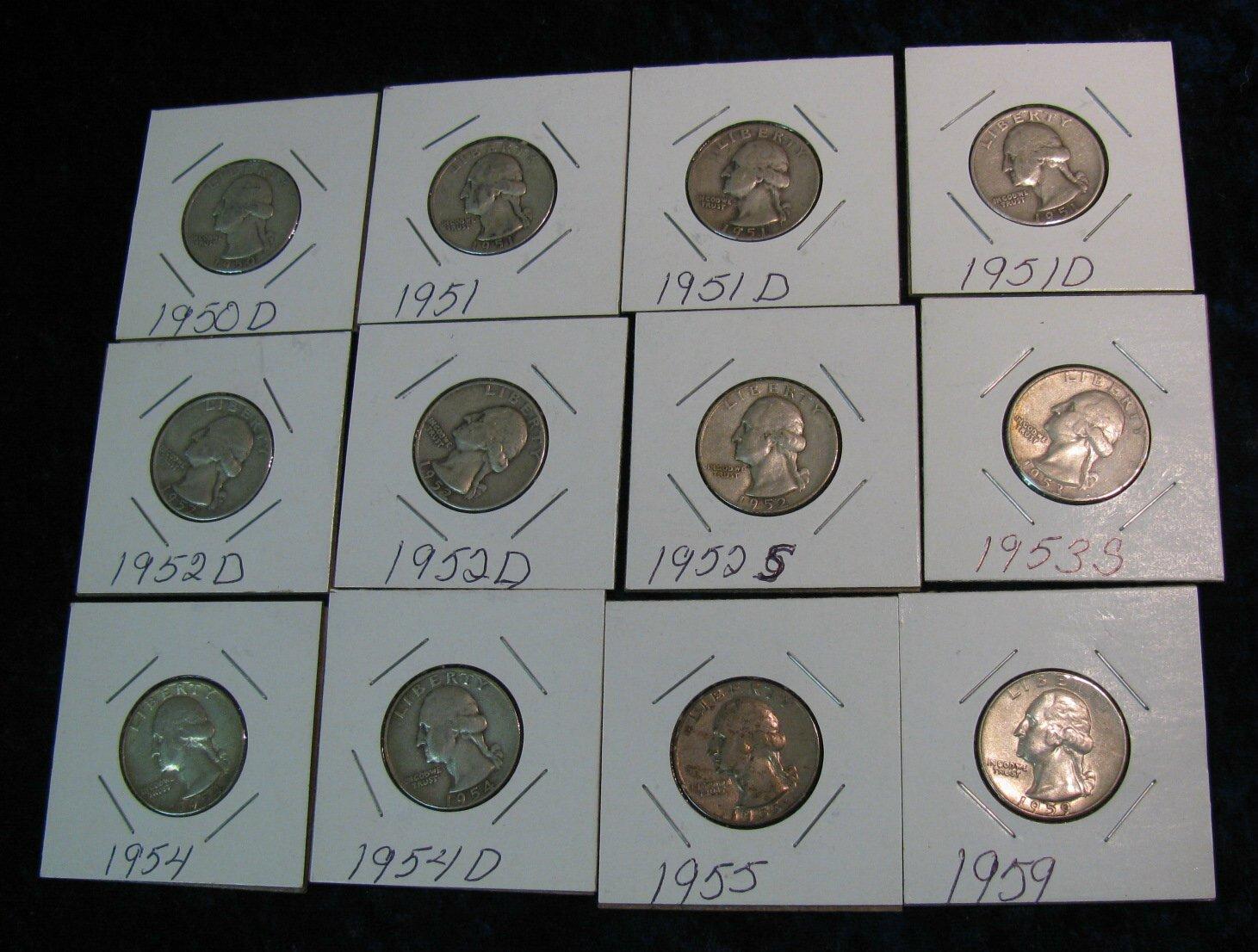612. (12) 1950-59 Silver Washington Quarters. VG-EF