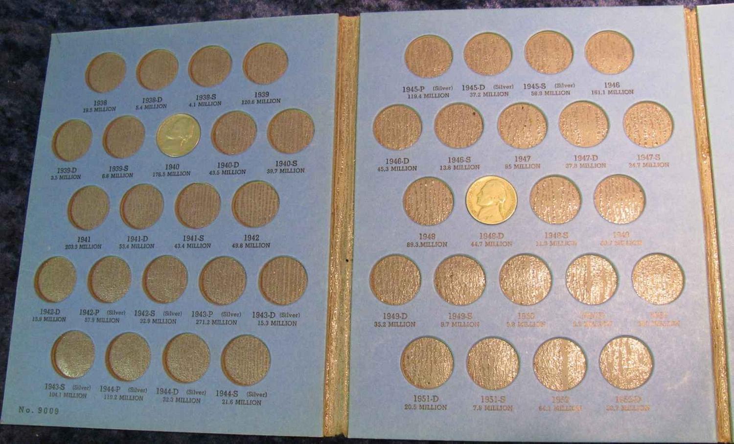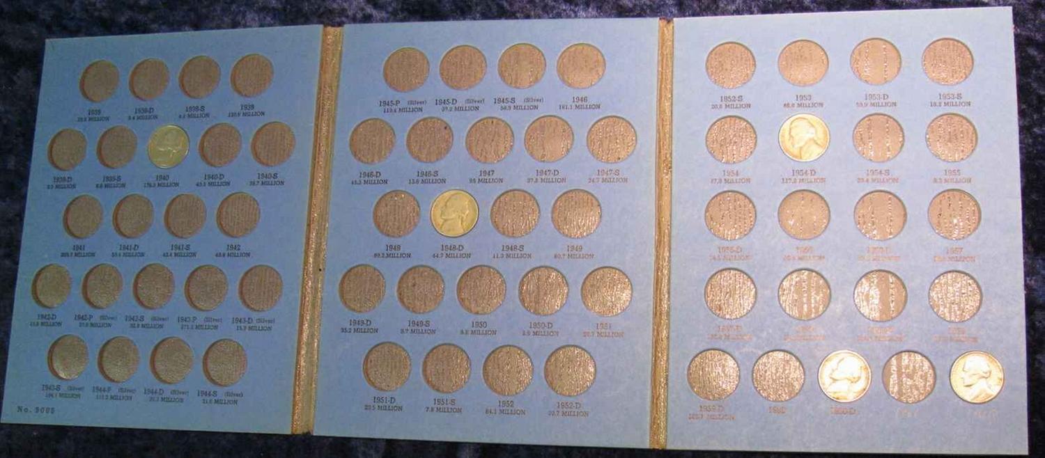 612. Whitman folder with several Jefferson Nickels dating back to 1940.