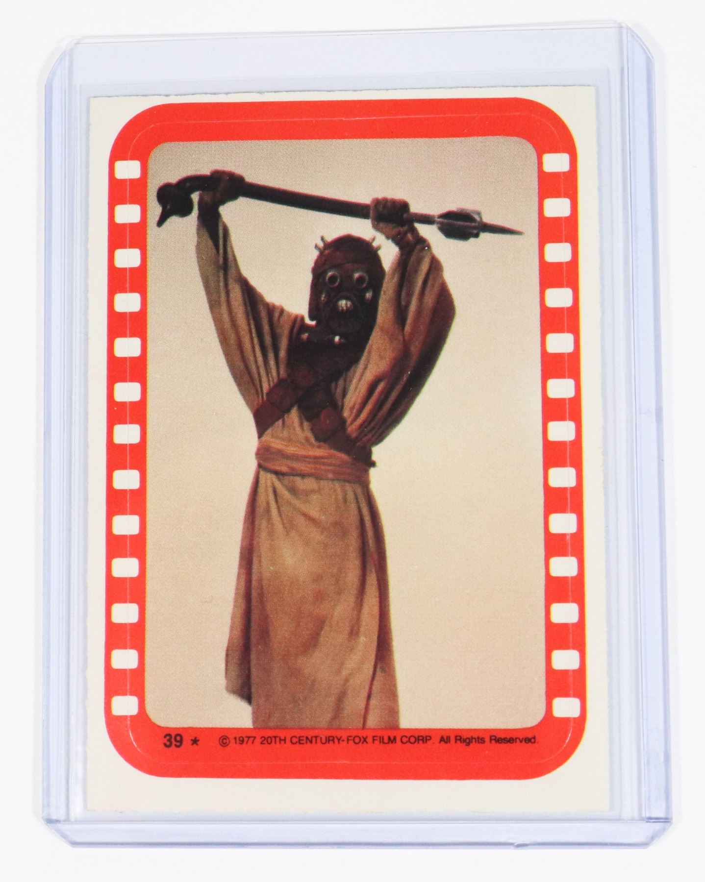 TUSKEN RAIDER CREATURE OF TATOOINE READY TO GRADE! TOPPS STICKER CARD STAR WARS A NEW HOPE 1977 INCLUDES CARD PROTECTIVE SLEEVE