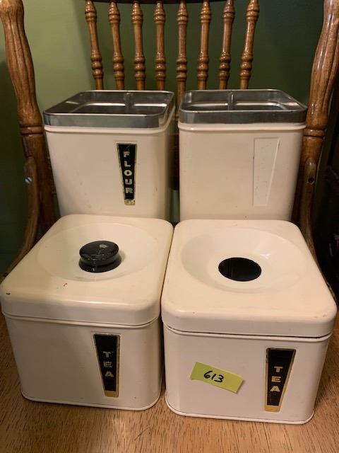 613 SET OF 4 VINTAGE KITCHEN CANISTER MADE IN CANADA BY QUEEN LINE