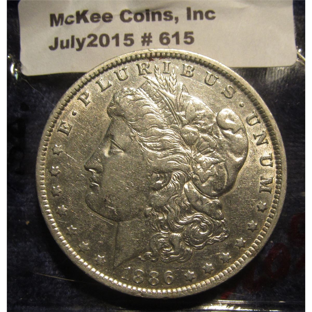 615. 1886 O Morgan Silver Dollar. AU 50.