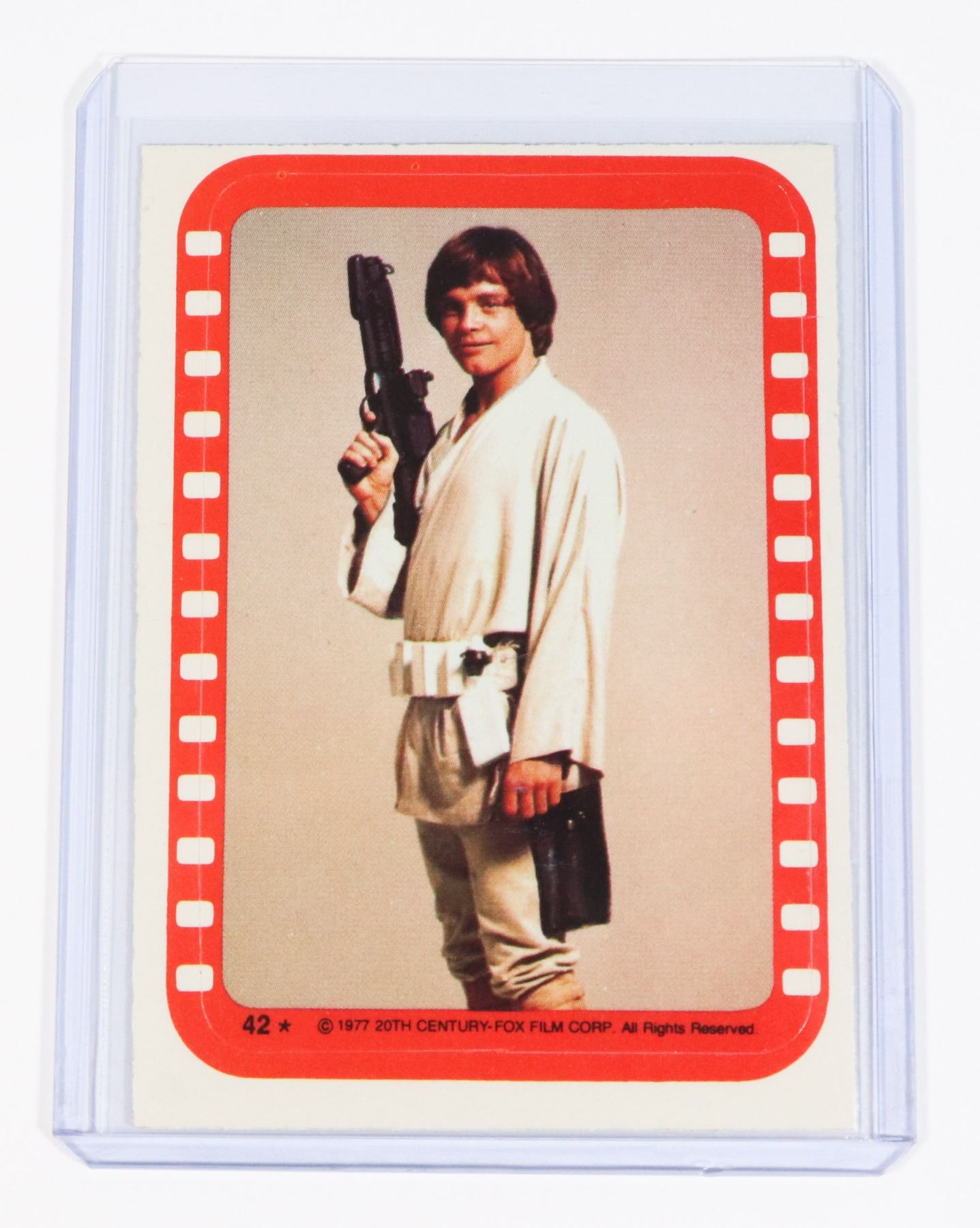 LUKE POSES WITH HIS WEAPON READY TO GRADE! TOPPS STICKER CARD STAR WARS A NEW HOPE 1977 INCLUDES CARD PROTECTIVE SLEEVE