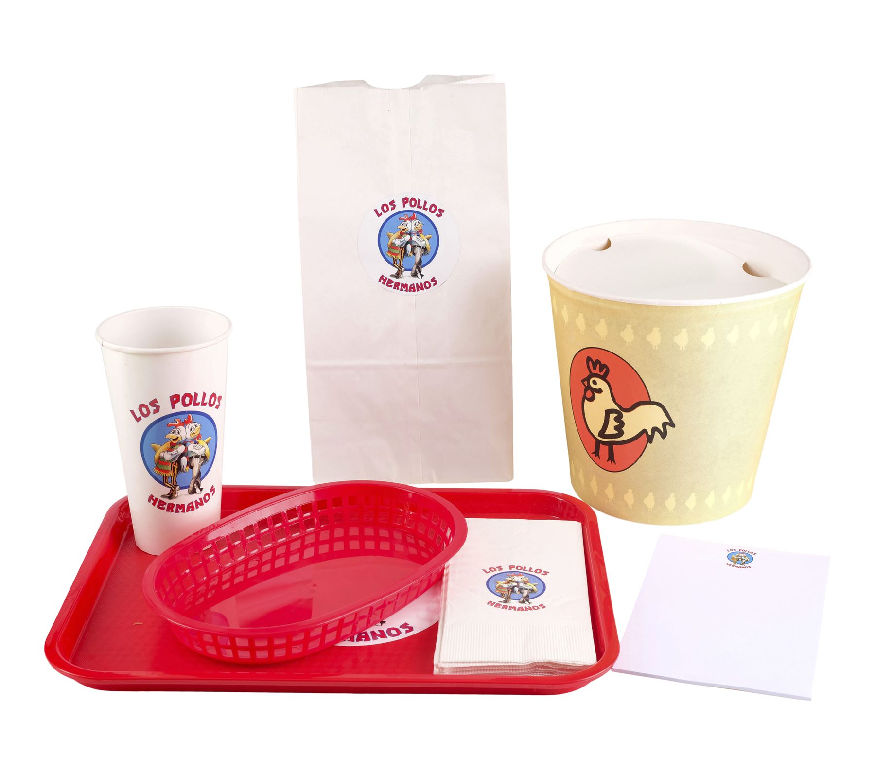 BETTER CALL SAUL (T.V. SERIES, 2015-2022) - Set of Los Pollos Hermanos-Branded Tableware - A set of Los Pollos Hermanos-branded tableware from Vince Gilligan's and Peter Gould's television series Better Call Saul. Gustavo "Gus" Fring (as played by Giancarlo Esposito) owned and operated a line of Los Pollos Hermanos fast food chicken restaurants as cover for his underground business throughout Seasons 3 through 6.