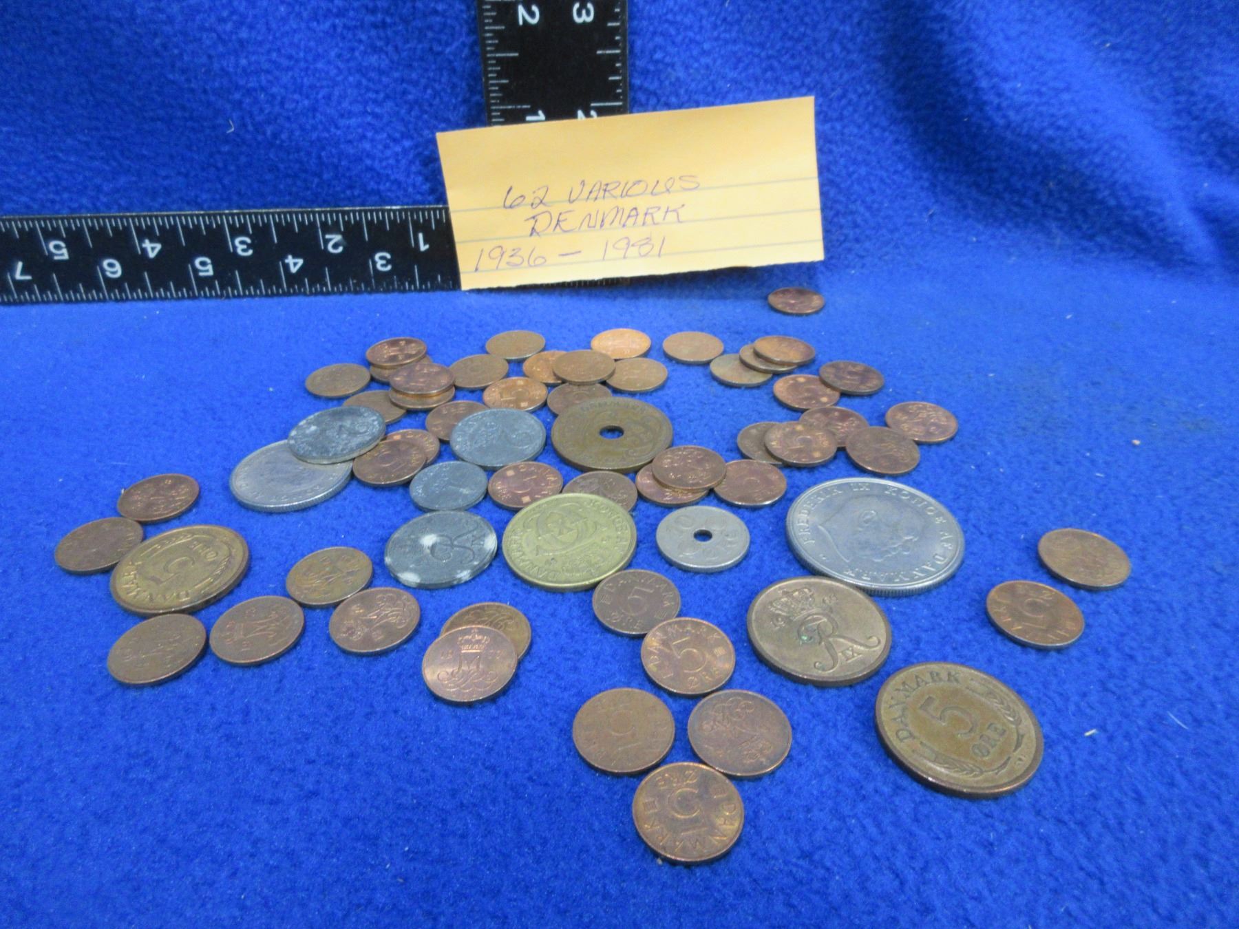 62 Assorted Denmark Coins - 1936 to 1981 - Some coins have silver content