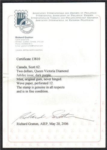 #62 MINT NH JUBILEE AIEP CERTFICATION C$2200,00<Br>*** ITEM HAS NO FAULTS***