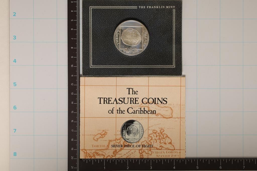 CARIBBEAN "SILVER PIECE OF EIGHT" IN ORIGINAL FRANKLIN MINT PACKAGING WITH INFO SHEET