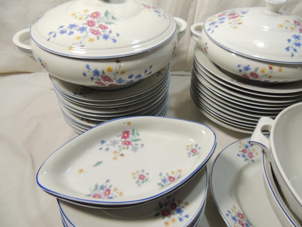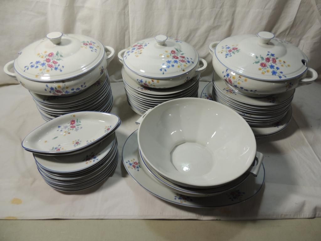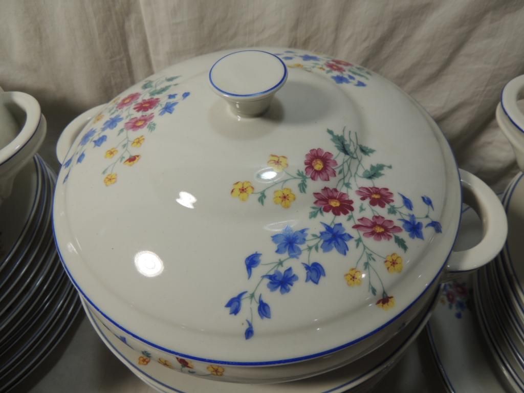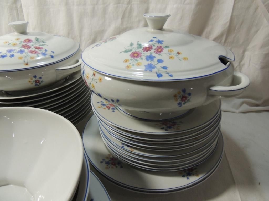 PLATES SERVING DISHES. BLUE AND WHITE WITH FLOWER ACCENT WILD FLOWER. AS SHOWN SEE PHOTO FOR MORE DETAILS.