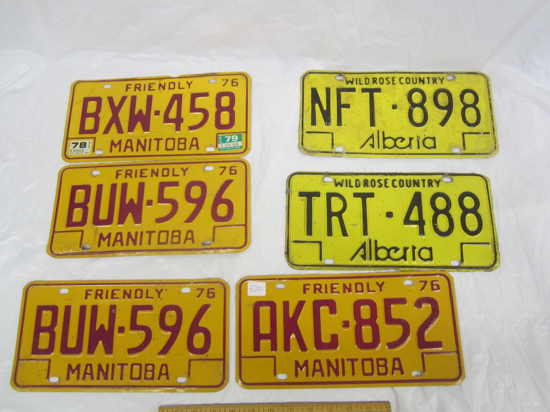 620. Lot of 6 Manitoba and Alberta Licence Plates
