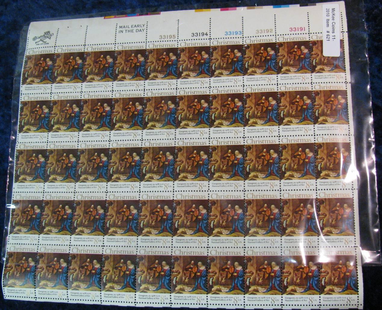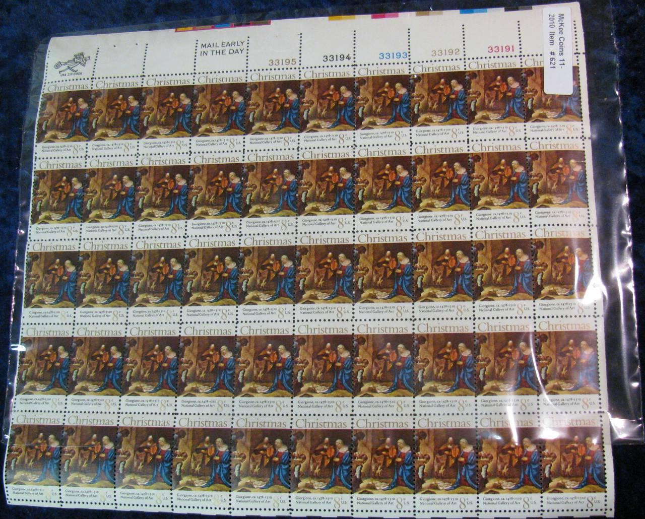 621. Mint Sheet of 50 Christmas U.S. 8c Stamps. (face value $4.00)