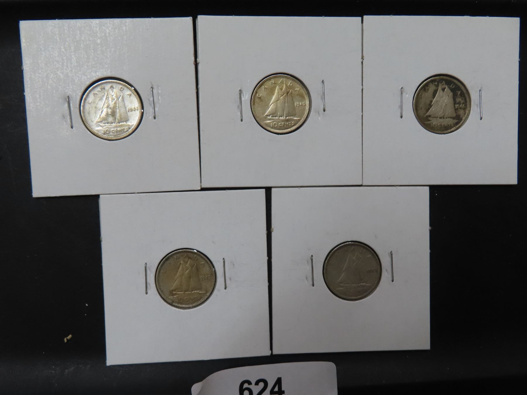 624 5 CDN SILVER DIMES 1944,45,46,47,47ML VG-F 45-XF