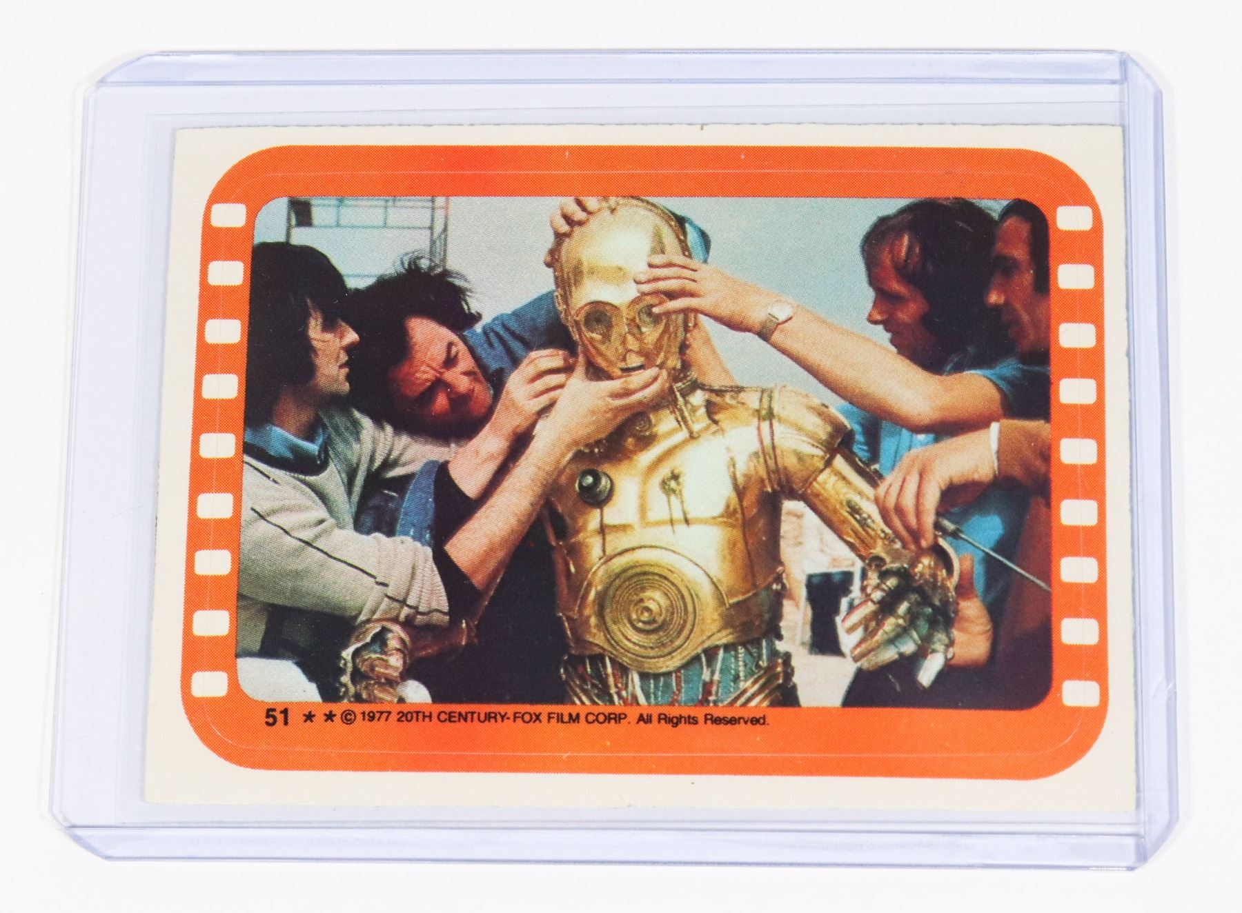 TECHNICIANS READ C-3P0 FOR THE CAMERAS READY TO GRADE! TOPPS STICKER CARD STAR WARS A NEW HOPE 1977 INCLUDES CARD PROTECTIVE SLEEVE