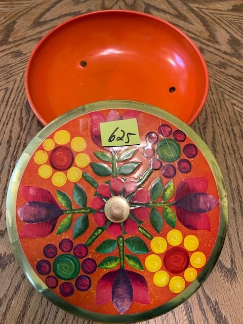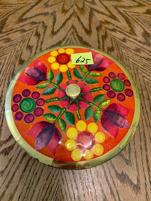 625 VINTAGE METAL COVERED TRINKET BOWL. MADE IN GERMANY AND HAND PAINTED