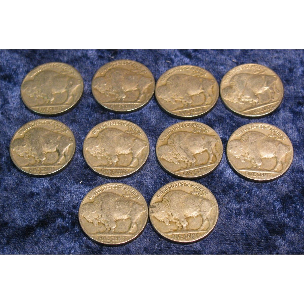 626. (10) 1934 D Buffalo Nickels. All with dates.