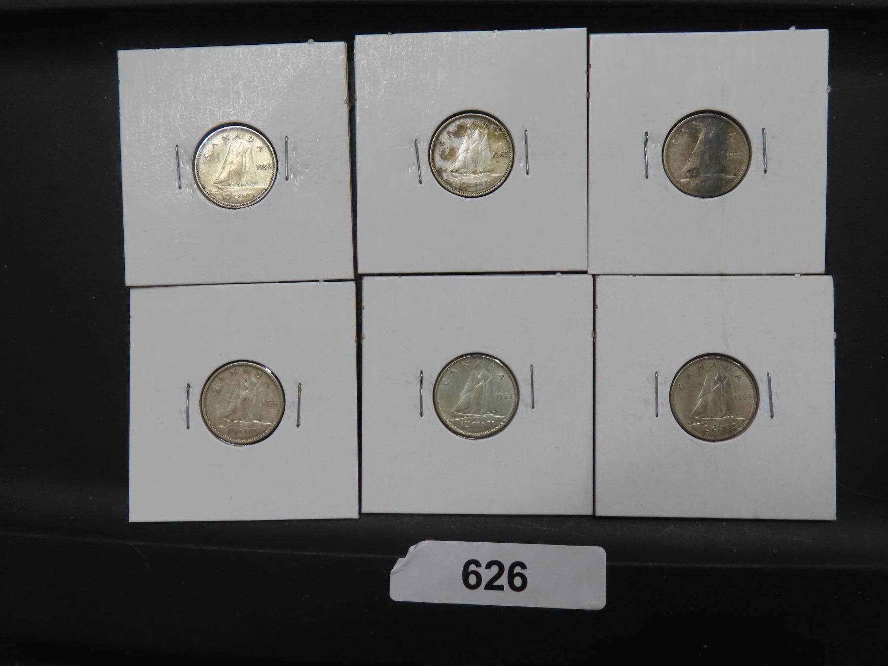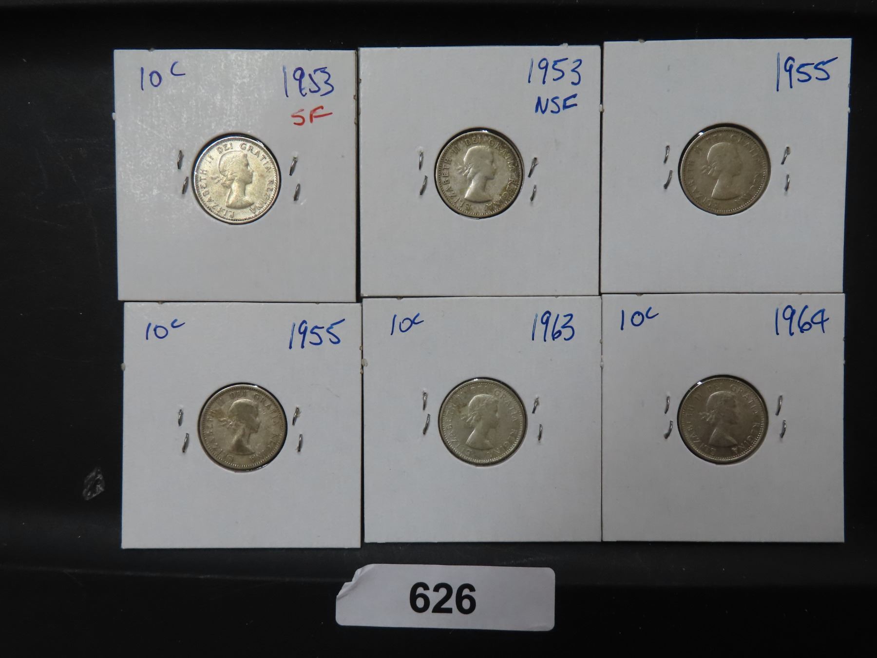 626 6 CDN SILVER DIMES 1953SF,53NSF,2-55,63,64 F-VF