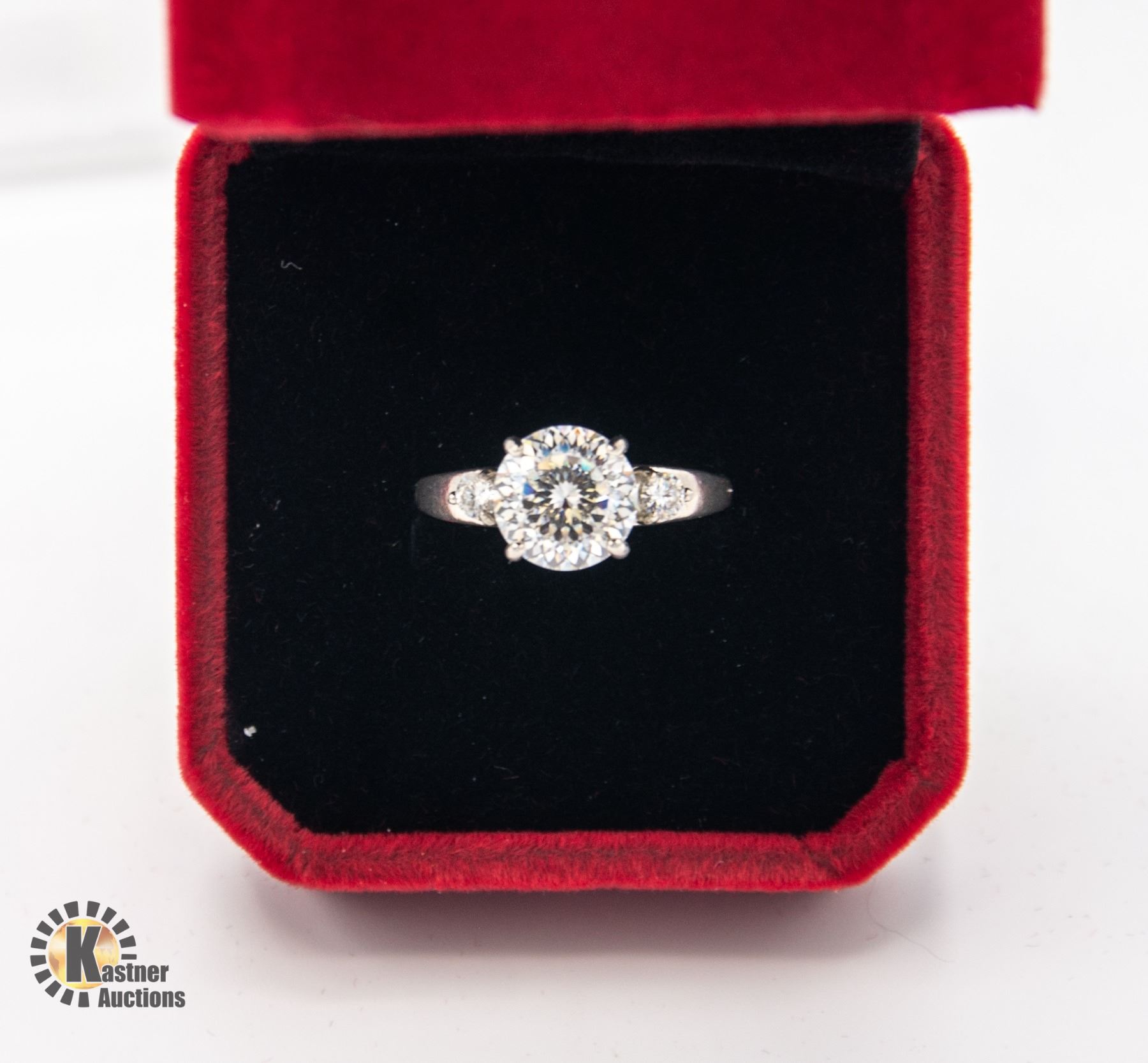 ROUND BRILLIANT CUT MOISSANITE STONE VVS D COLOR SET IN CENTER IN 925 SILVER RING SIZE 6.75 **ALL ITEMS MUST BE REMOVED BY 5PM SATURDAY, SEPTEMBER 21ST 2024. ALL REMAINING ITEMS WILL BE SUBJECT TO A $6.00 PER DAY STORAGE CHARGE. ANY ITEMS REMAINING AFTER MONDAY, OCTOBER 7TH 2024 WILL BE CONSIDERED FORFEITED. NO REFUNDS WILL BE ISSUED FOR FORFEITED ITEMS. TO SCHEDULE A PICK UP APPOINTMENT CLICK HERE