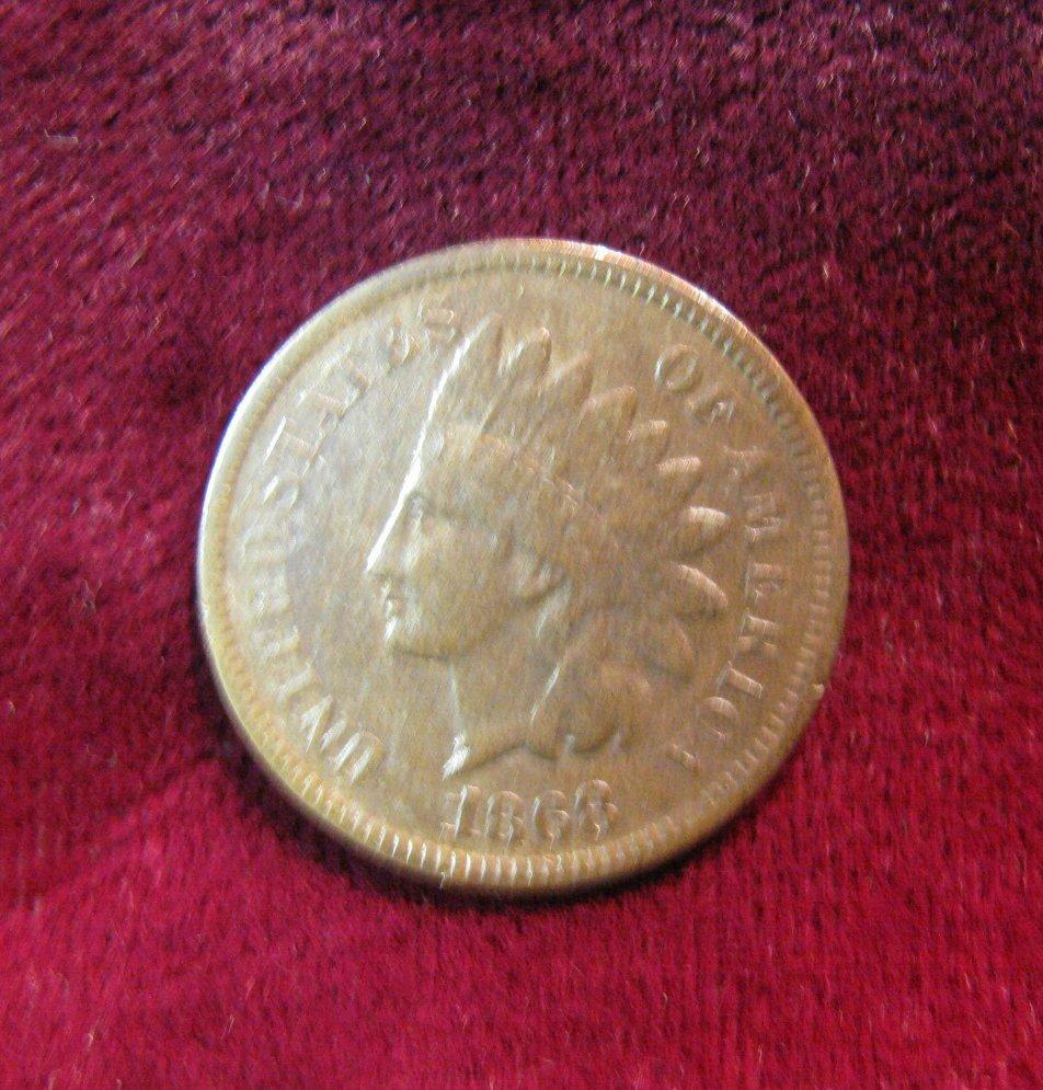 627. 1868 Indian Head Cent. VF. Cleaned.