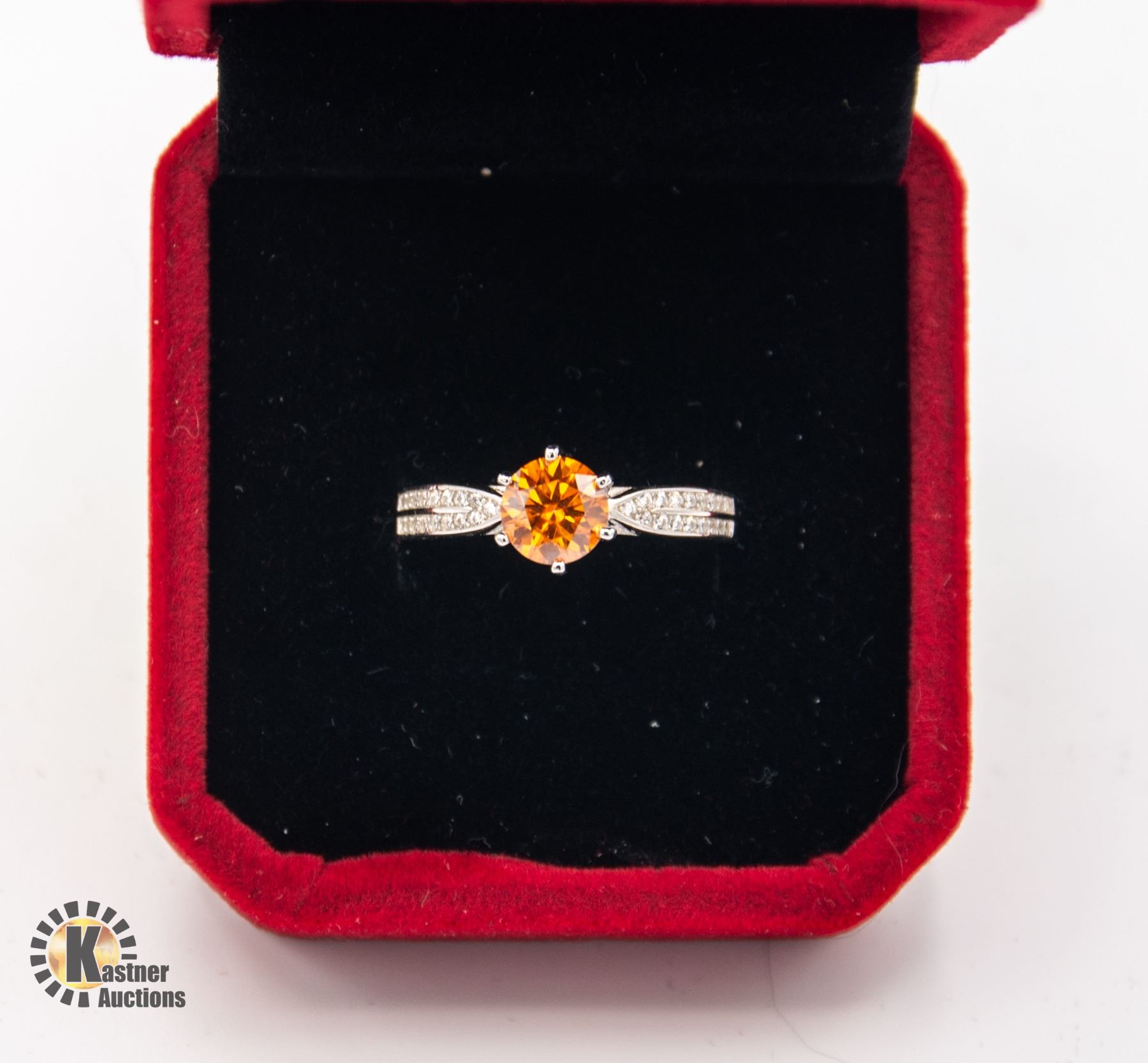 BRILLIANT CUT MOISSANITE STONE VVS INTENSE FANTA COLOR SET IN CENTER IN 925 SILVER RING SIZE 8 **ALL ITEMS MUST BE REMOVED BY 5PM SATURDAY, SEPTEMBER 21ST 2024. ALL REMAINING ITEMS WILL BE SUBJECT TO A $6.00 PER DAY STORAGE CHARGE. ANY ITEMS REMAINING AFTER MONDAY, OCTOBER 7TH 2024 WILL BE CONSIDERED FORFEITED. NO REFUNDS WILL BE ISSUED FOR FORFEITED ITEMS. TO SCHEDULE A PICK UP APPOINTMENT CLICK HERE