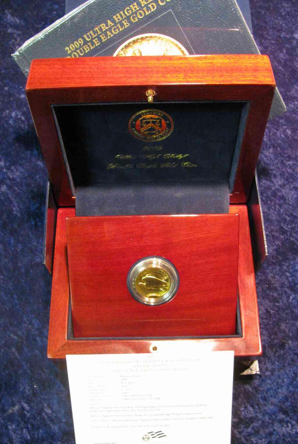 628. 2009 U.S. Ultra High Relief Double Eagle One Ounce Gold Coin with original box, book, & packaging.