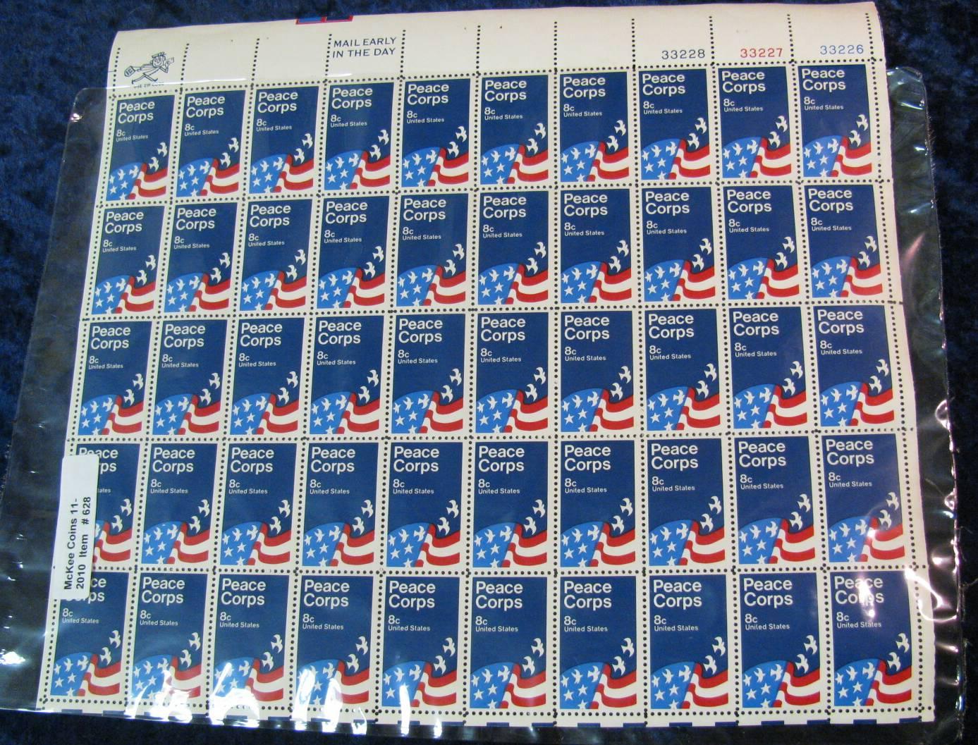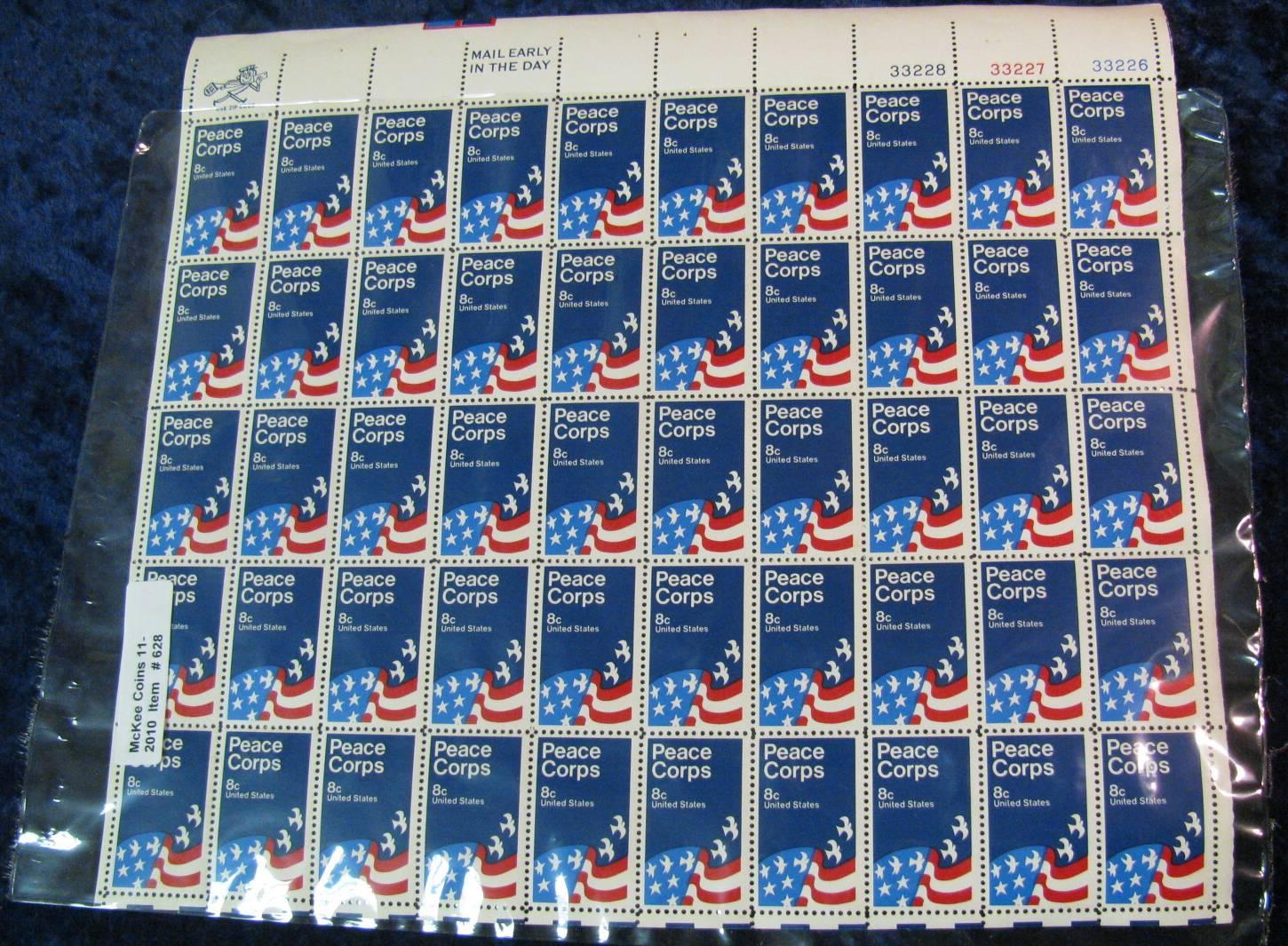 628. Mint Sheet of 50 Peace Corps U.S. 8c Stamps. (face value $4.00)