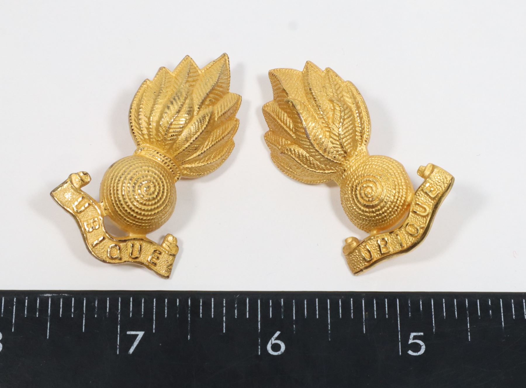COLLARS COLLAR BADGE PAIR SET W. SCULLY LTD MONTREAL MAKER MARKED ON REVERSE LUGS HAVE BEEN FLATTENED ON ONE BADGE CANADIAN CANADA MILITARY ARMY COLD WAR ERA QUEEN ELIZABETH II QEII